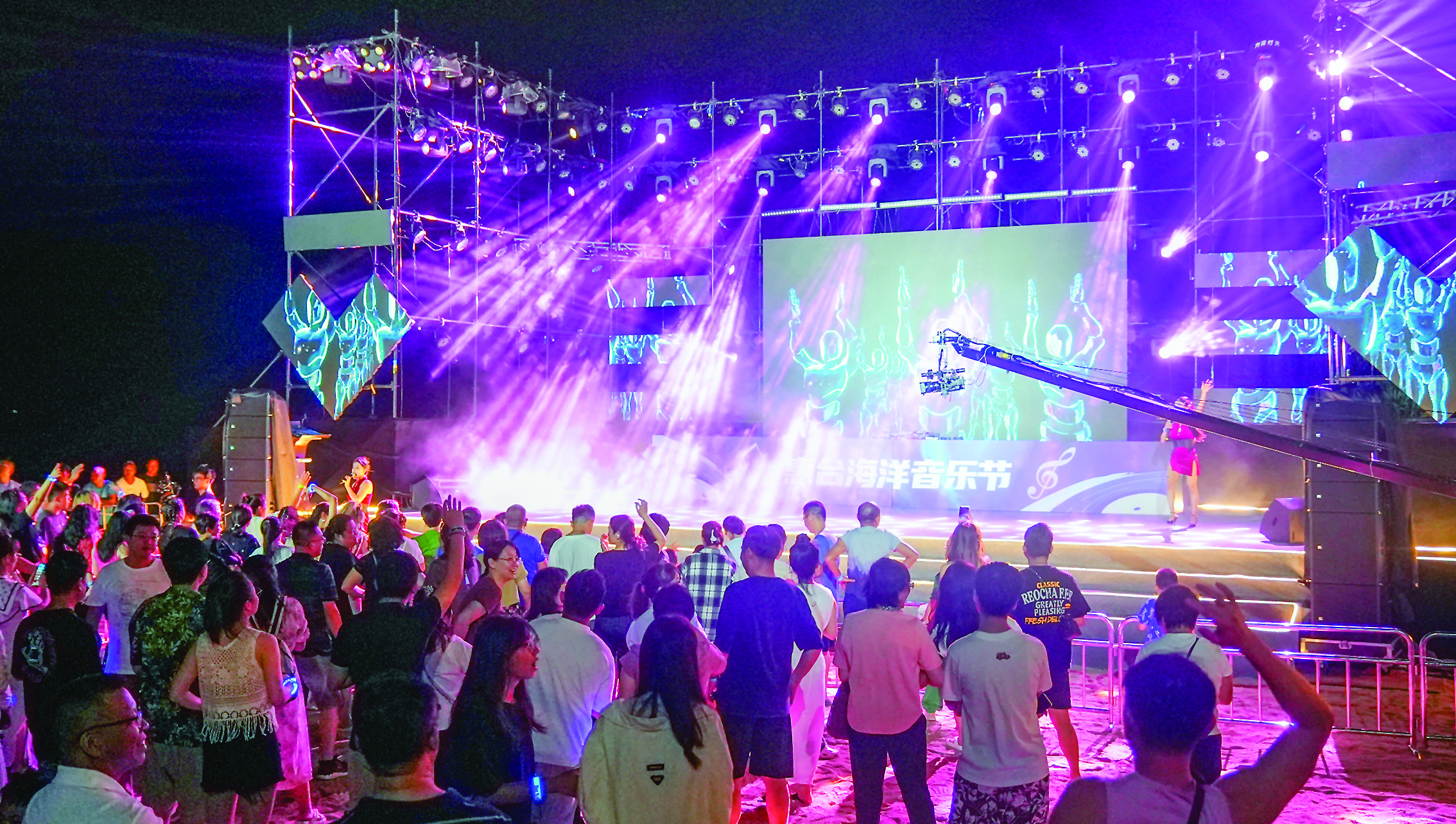 熒光閃爍,近三個(gè)小時(shí)的活動(dòng)中,精彩的表演引來(lái)臺(tái)下觀眾揮手歡呼,現(xiàn)場(chǎng)仿佛匯成一片燦爛的“星河”、歌聲的“海洋”,讓大家在美麗的雙月灣共享了一場(chǎng)音樂(lè)盛宴。