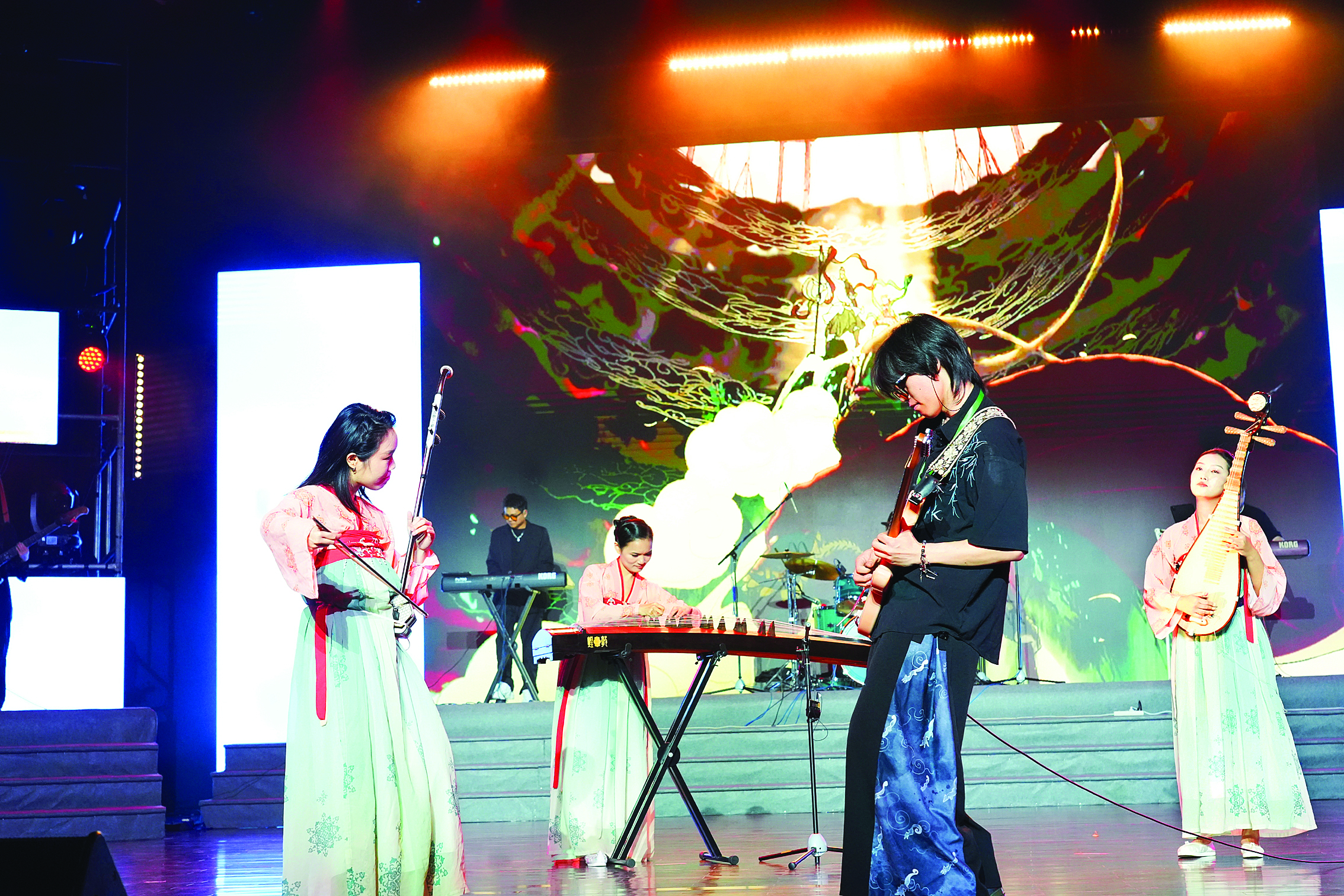 傳統(tǒng)樂器與吉他同臺演奏;葜萑請笥浾咴S文昌 攝