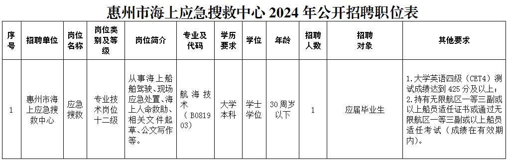 附件:1惠州市海上應急搜救中心2024年公開招聘職位表.docx