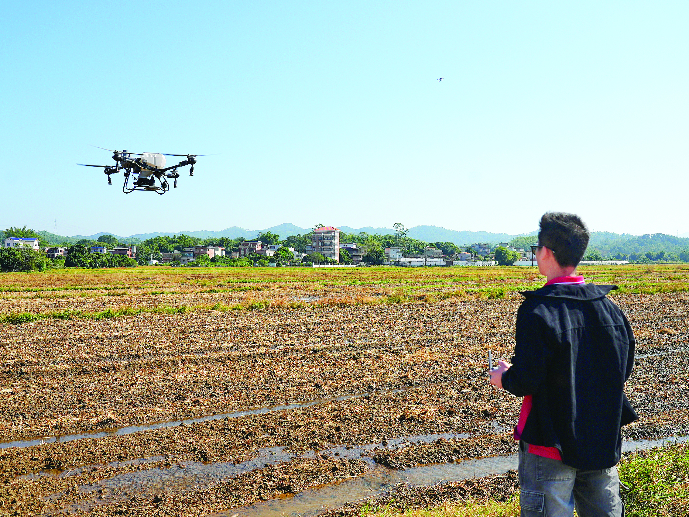 植保無人機在半空穿梭,身后拖著一串“迷霧”。原來,這是無人機在進行飛播作業(yè)!叭鱿碌氖亲显朴⒎N子,紫云英開花后,就能作為我們明年種水稻的肥料了!痹谡崞掖宕笃玫霓r田邊,惠州供銷(橫瀝)水稻農場負責人李子奇說。今年,該農場首次在村里種植紫云英綠肥。本月初水稻陸續(xù)收割,緊接著耙田、開溝、放水、濕潤田地、撒紫云英種子,計劃月底前完成蔗埔村、新榮村1000畝紫云英綠肥種植。“紫云英綠肥還田后,能增加土壤氮肥含量,提高土地肥力,來年種水稻,不僅節(jié)省肥料,更有助于提高水稻產量!
