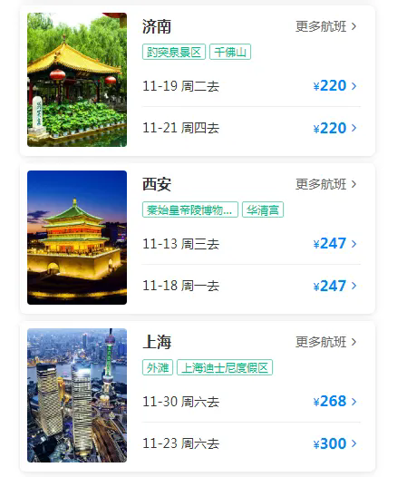數(shù)據(jù)來(lái)源:攜程旅行官網(wǎng)(截至11月11日上午)