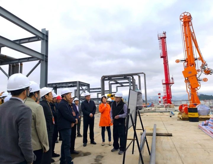 代表們走進(jìn)惠州港荃灣港區(qū)東部岸線看到,惠州港荃灣港區(qū)5萬噸級(jí)液化烴碼頭項(xiàng)目綜合樓已接近封頂,正在進(jìn)行綜合樓部分樓層墻體、設(shè)備用房墻體砌筑,碼頭裝卸臂、登船梯、消防炮塔等大型設(shè)備已安裝就位。