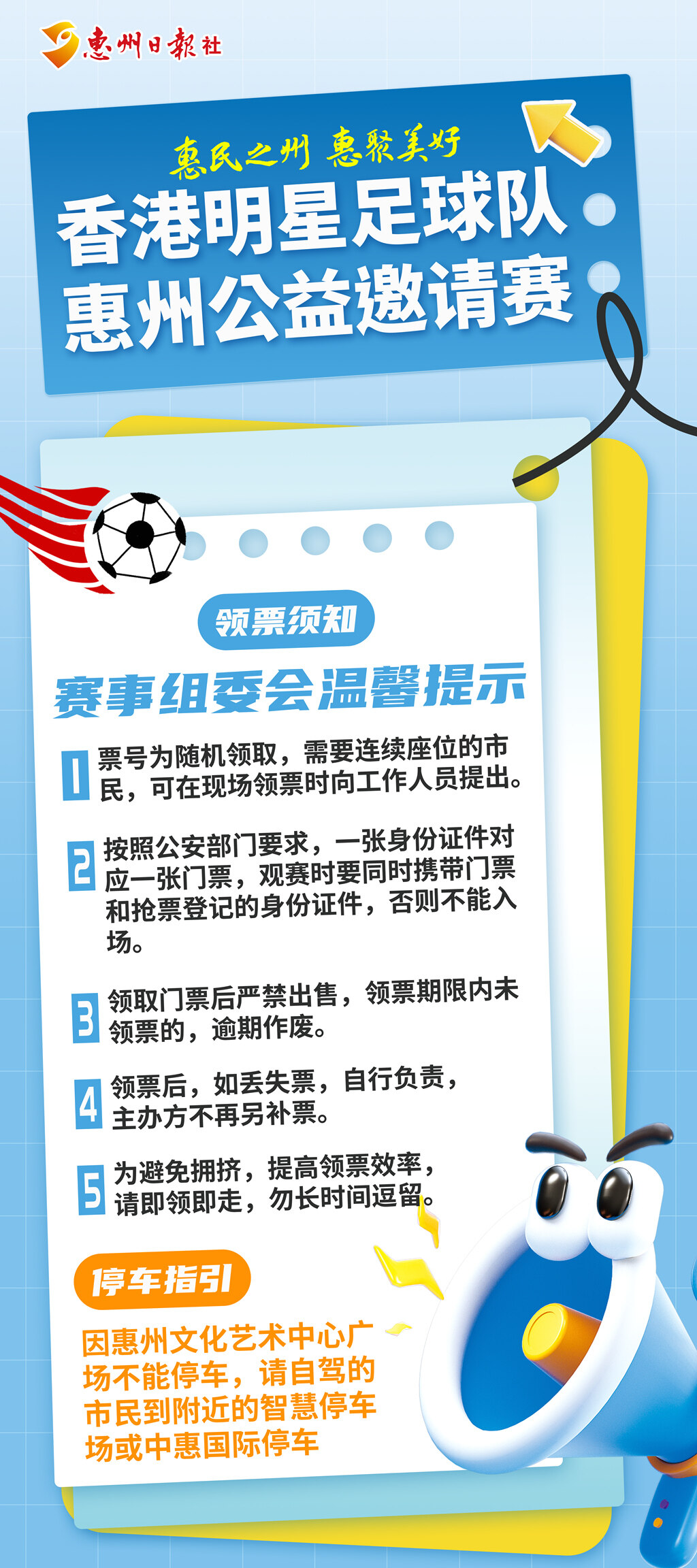此外,因惠州文化藝術(shù)中心廣場不能停車,請自駕市民到附近的智慧停車場或中惠國際停車。為避免擁擠,提高領(lǐng)票效率,請市民錯峰領(lǐng)票,即領(lǐng)即走,勿長時間逗留。