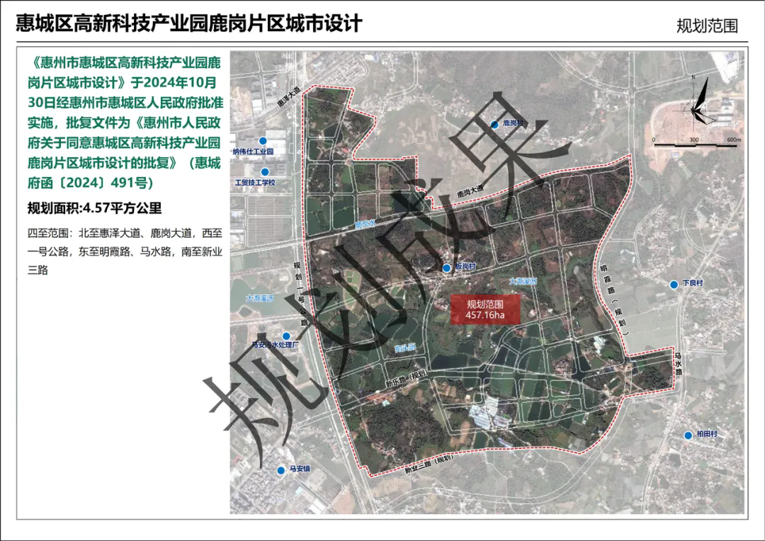 根據(jù)公告顯示,《惠州市惠城區(qū)高新科技產(chǎn)業(yè)園鹿崗片區(qū)城市設(shè)計(jì)》于2024年10月30日經(jīng)惠州市惠城區(qū)人民政府批準(zhǔn)實(shí)施,批復(fù)文件為《惠州市人民政府關(guān)于同意惠城區(qū)高新科技產(chǎn)業(yè)園鹿崗片區(qū)城市設(shè)計(jì)的批復(fù)》(惠城府函〔2024〕491號(hào)) 。