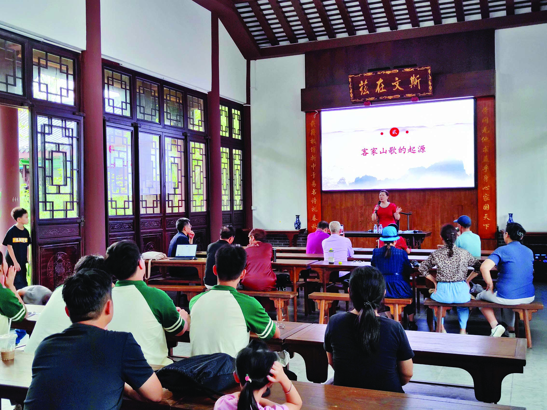惠州日報訊 (記者香金群)近日,“豐湖講堂·文化之聲”探尋惠州獨(dú)特魅力系列主題講座在豐湖書院樂群堂舉行,國家一級演員、廣東省級非物質(zhì)文化遺產(chǎn)項(xiàng)目“惠陽皆歌”代表性傳承人黃紅英與大家分享了《客家山歌藝術(shù)賞析與傳承》,動聽的歌聲和精彩的講解吸引不少市民游客前來感受山歌的魅力。