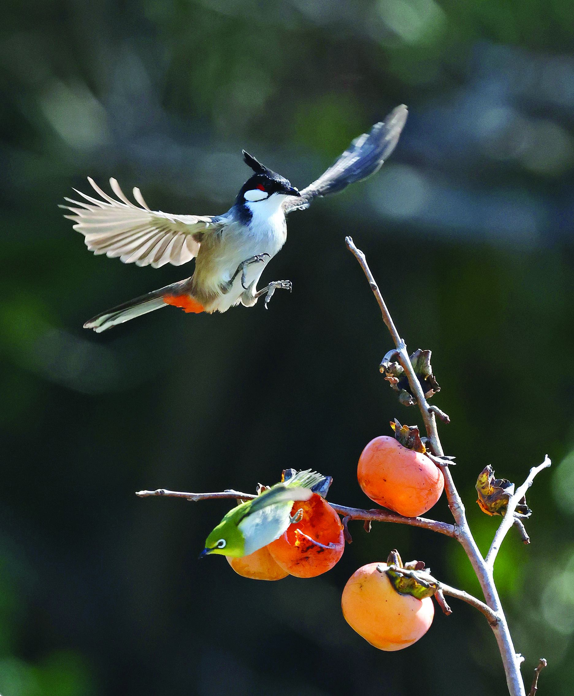 近日,市區(qū)東江公園一棵柿子樹碩果累累,成熟的柿子吸引了繡眼鳥、白頭鵯、紅耳鵯等各種鳥兒前去啄食,“你方吃罷我登場(chǎng)”的饕餮盛宴頻頻上演。這一熱鬧景象吸引了眾多攝影愛好者,他們紛紛拿出“長槍短炮”定格精彩瞬間!傲记輷衲径鴹保骄G水清天藍(lán)的惠州為鳥類棲息繁衍創(chuàng)造了良好環(huán)境,一幕幕人與自然和諧共生的場(chǎng)景繪就了美麗惠州新畫卷。