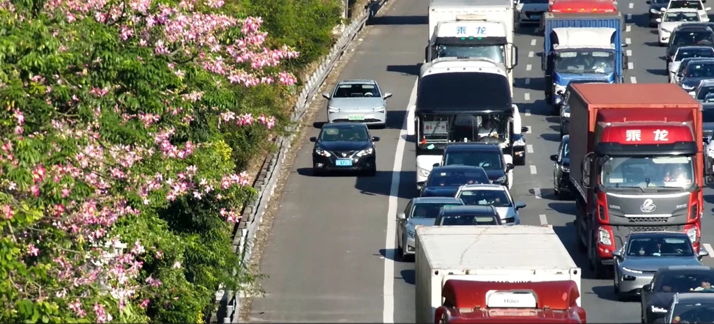交警部門(mén)在節(jié)假日高速公路擁堵路段進(jìn)行巡航,警示勸導(dǎo)路面交通違法行為。(市政務(wù)服務(wù)和數(shù)據(jù)管理局提供)