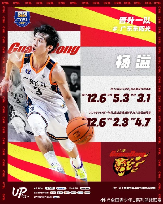 2021年楊溢入選了中國男籃U16青年隊,2022年楊溢在首屆少年CBA全國挑戰(zhàn)賽-總決賽中,幫助廣東省實驗中學(xué)奪得冠軍,并憑借亮眼的表現(xiàn)榮獲MVP榮譽(yù)。