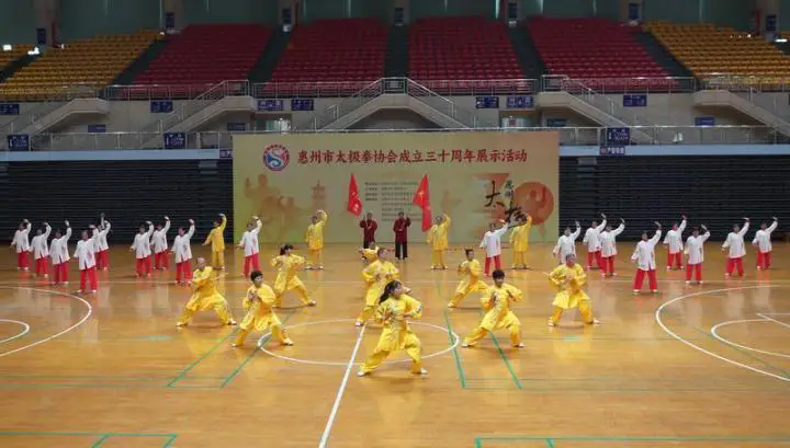 12月8日上午,惠州市太極拳協(xié)會成立30周年展示活動在市區(qū)江北體育館舉行,來自全市各地的健身愛好者齊聚一堂,共同上演了一場千人太極拳表演活動,共同習練《健身氣功八段錦》《24式太極拳》《功夫扇》《楊式十三刀》等多個項目,眾人一字排開,一招一式,整齊劃一,蔚為壯觀。惠州市太極拳協(xié)會自1994年成立以來,從最初的70多名會員發(fā)展到如今擁有2000多名會員,多次代表惠州參加省市、國家、國際比賽,榮獲眾多榮譽,成為我市全民健身運動一道亮麗的風景線。