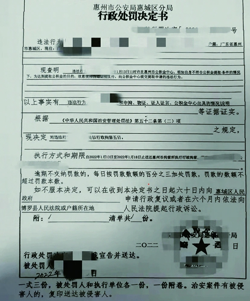 經(jīng)過公安機(jī)關(guān)偵查,證實(shí)鐘某在明知自身不符合住房公積金提取條件的情況下,為達(dá)到提取住房公積金的目的,故意偽造提取材料辦理提取。最終,公安機(jī)關(guān)對(duì)鐘某作出處以行政拘留5天的行政處罰。