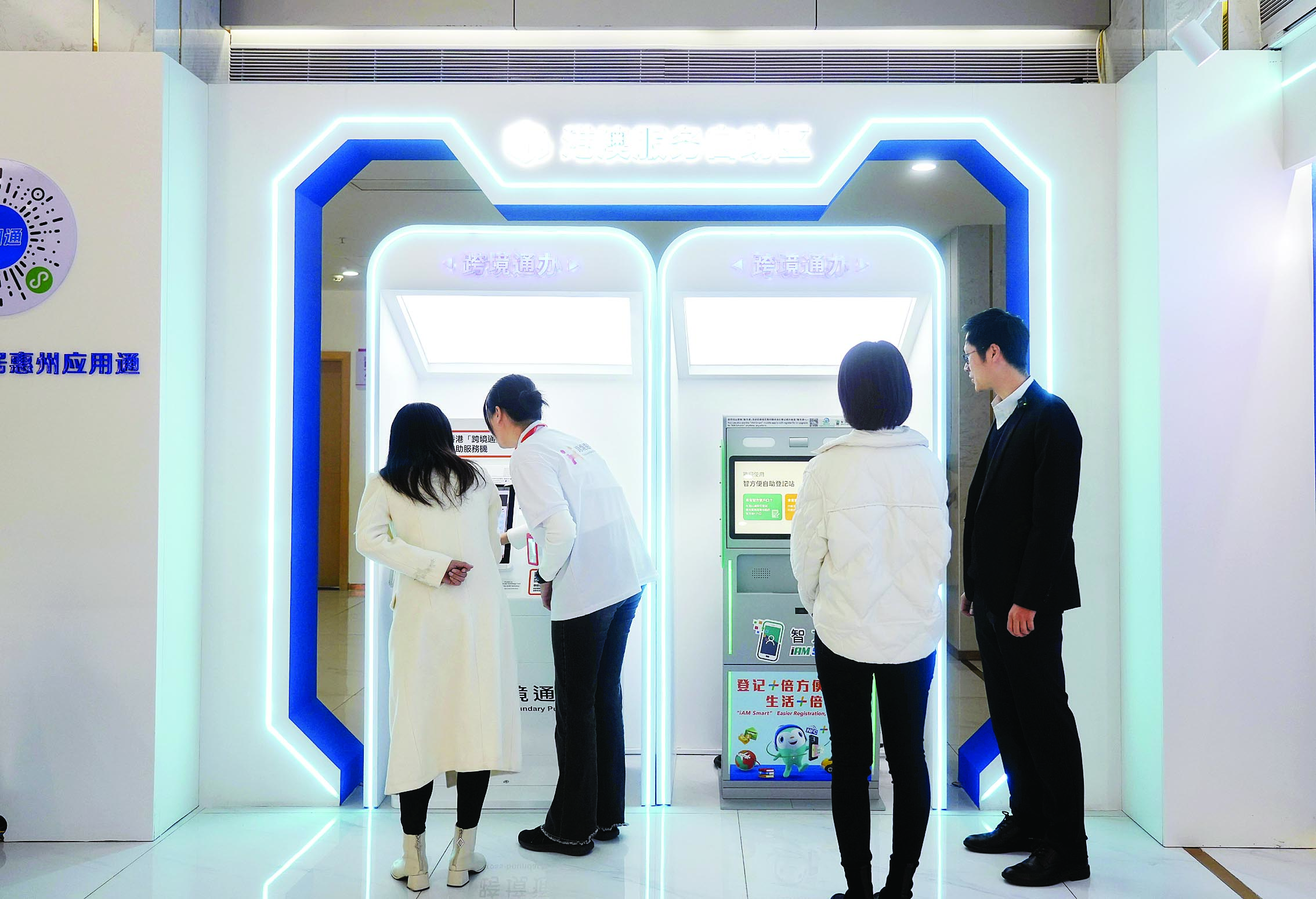12月20日,香港“跨境通辦”自助服務(wù)機(jī)及“智方便”自助登記站啟動(dòng)儀式在市政務(wù)服務(wù)中心大廳舉行,進(jìn)一步深化惠港政務(wù)服務(wù)互通、促進(jìn)兩地融合發(fā)展;葜菀渤蔀榈谖鍌(gè)設(shè)置香港“跨境通辦”自助服務(wù)機(jī)的城市。