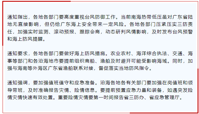 22日廣東省三防辦發(fā)通知稱要高度重視臺(tái)風(fēng)防御工作