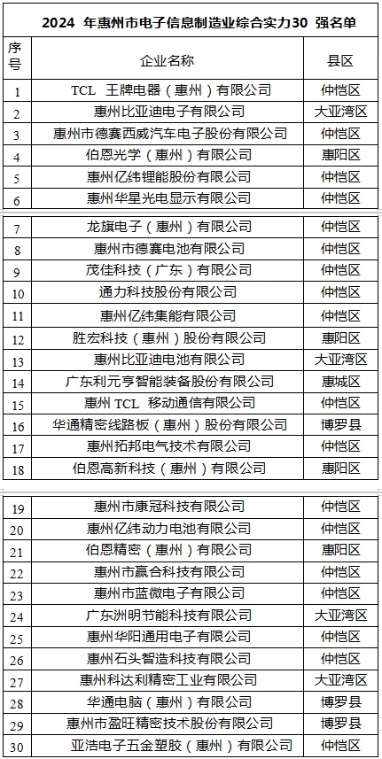 2024年惠州市電子信息制造業(yè)綜合實力30強企業(yè)頒獎。