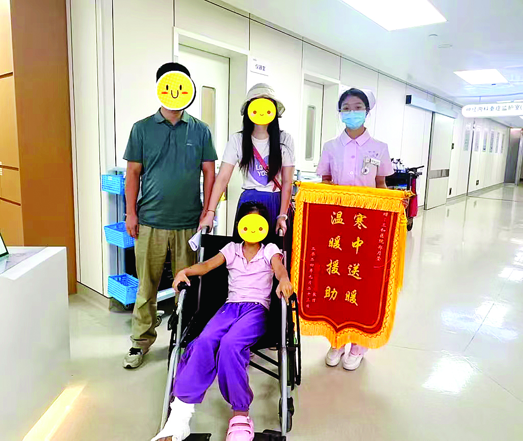 獲救助女孩一家為鄭月瑩(右)送上錦旗。
