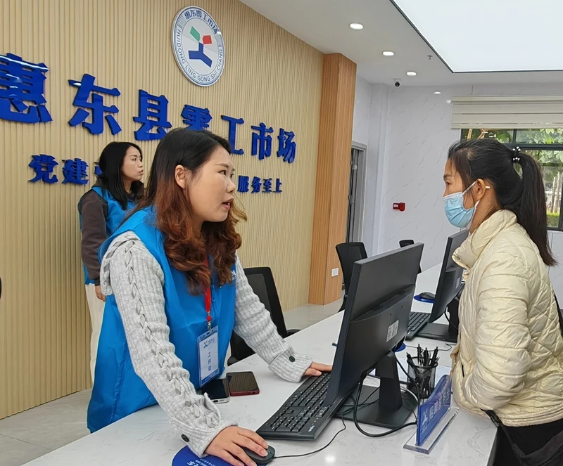 惠州市惠東縣零工市場揭牌運營,不少群眾前來咨詢。