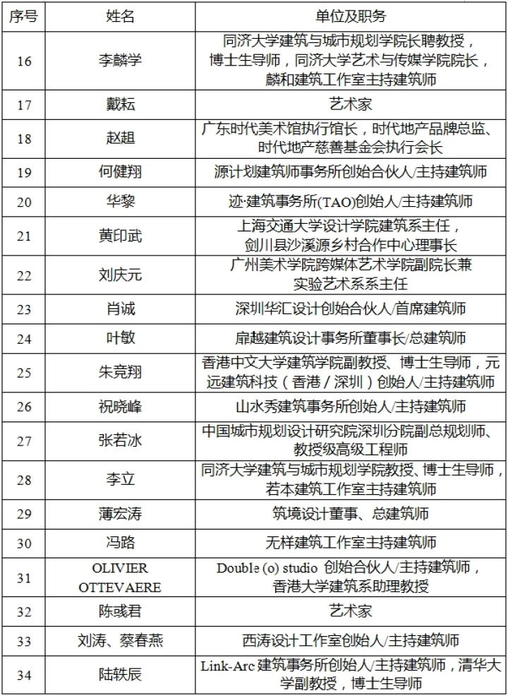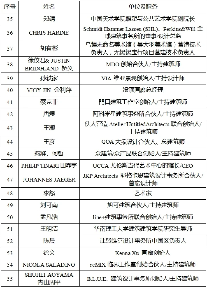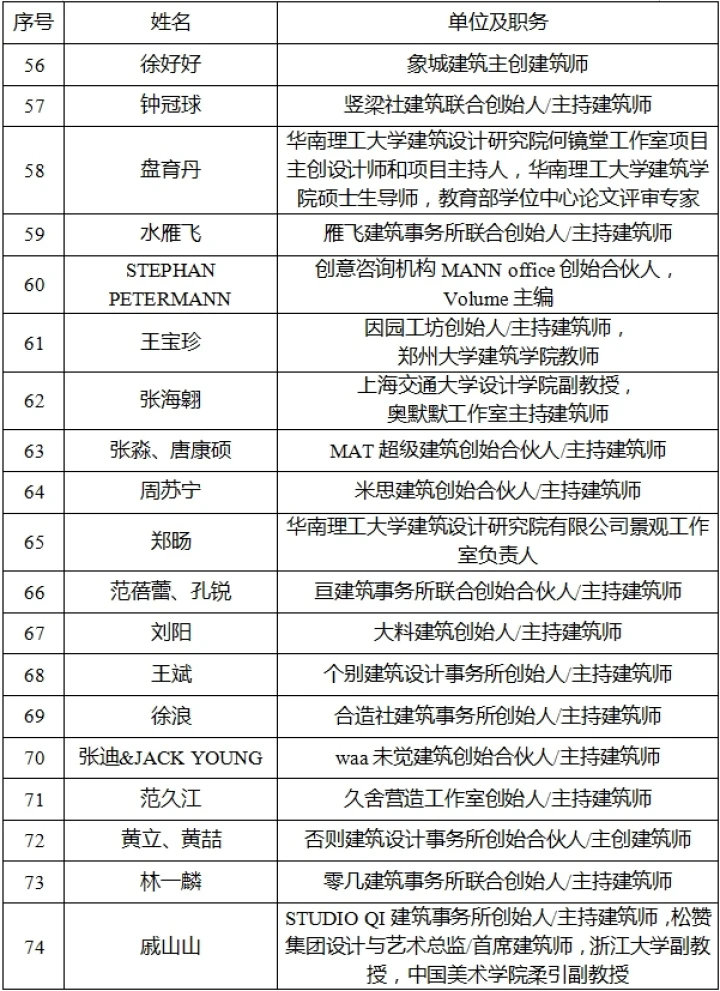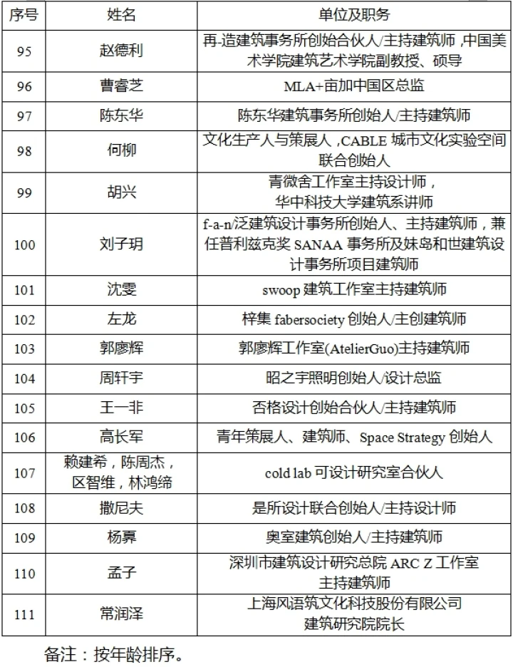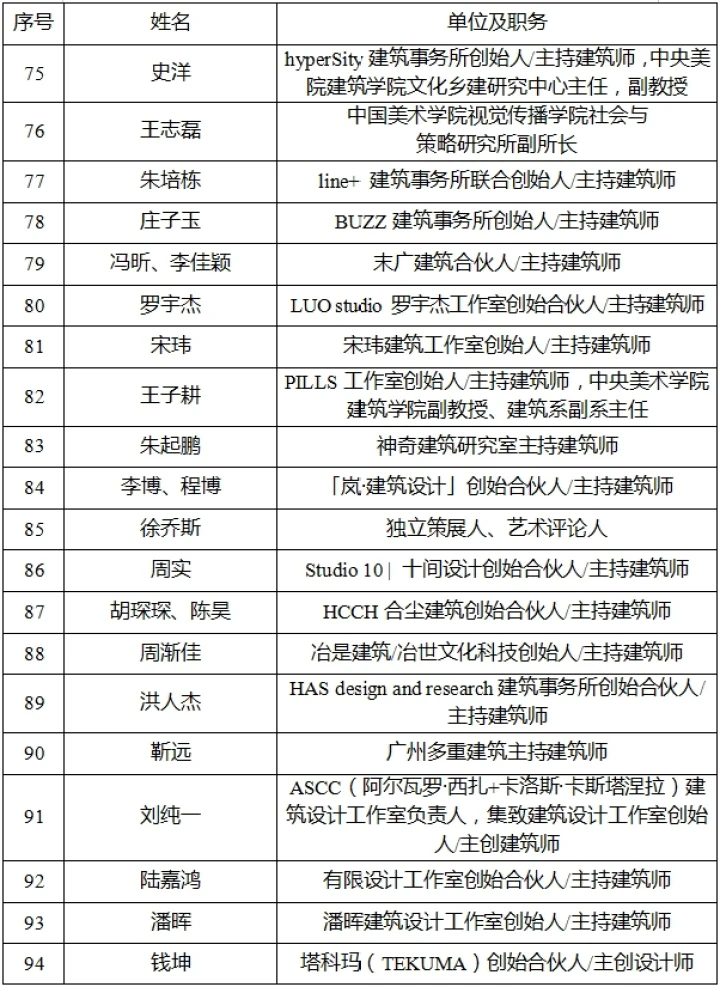 建筑藝術(shù)計(jì)劃百大人才庫成員名單