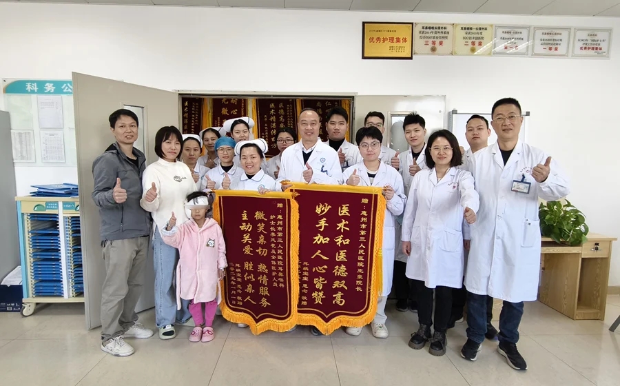 近日,“港澳藥械通”人工耳蝸落地惠州后,念念接受了右耳人工耳蝸植入術(shù)。手術(shù)由惠州市第三人民醫(yī)院黨委副書記、副院長(zhǎng)、眼耳鼻喉口腔醫(yī)學(xué)中心主任王豪主刀。術(shù)后第二天,念念恢復(fù)良好,心情愉悅,當(dāng)天出院前,家人還特意給醫(yī)護(hù)人員贈(zèng)送了錦旗。