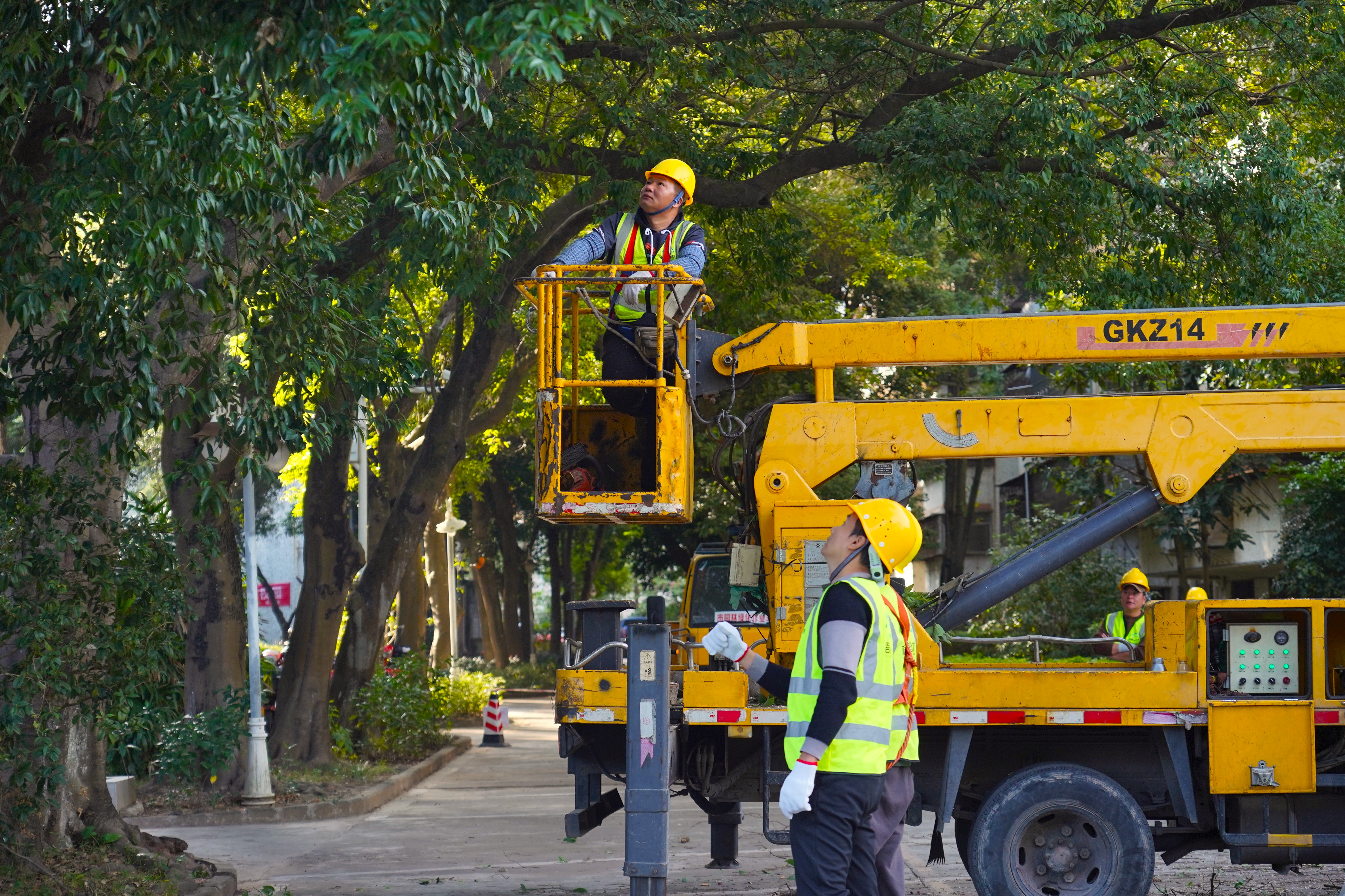 市區(qū)兩級城管執(zhí)法部門聯(lián)合舉辦綠化樹木規(guī)范修剪現(xiàn)場示范活動。 惠州日報(bào)記者肖泓 攝