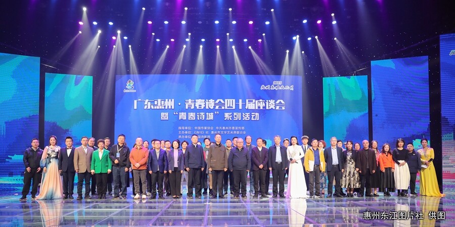 1月13日晚,青春詩(shī)會(huì)四十屆座談會(huì)暨“青春詩(shī)城”系列活動(dòng)之“永遠(yuǎn)的青春”詩(shī)歌朗誦會(huì)舉行,吉狄馬加、王山、楊克等參會(huì)詩(shī)人現(xiàn)場(chǎng)吟誦自己創(chuàng)作的青春詩(shī)篇,惠州本地專業(yè)主持人、朗誦家也共同參與朗誦“青春詩(shī)會(huì)”走出的著名詩(shī)人的經(jīng)典名篇。朗誦會(huì)輔以音樂(lè)等形式,融合新媒體技術(shù),呈現(xiàn)出詩(shī)樂(lè)相配的精彩畫面,給觀眾帶來(lái)審美愉悅和心靈震撼。