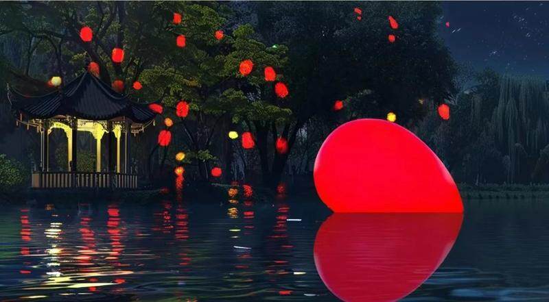 燈組“西湖心”以半心形造型設(shè)置在水面。