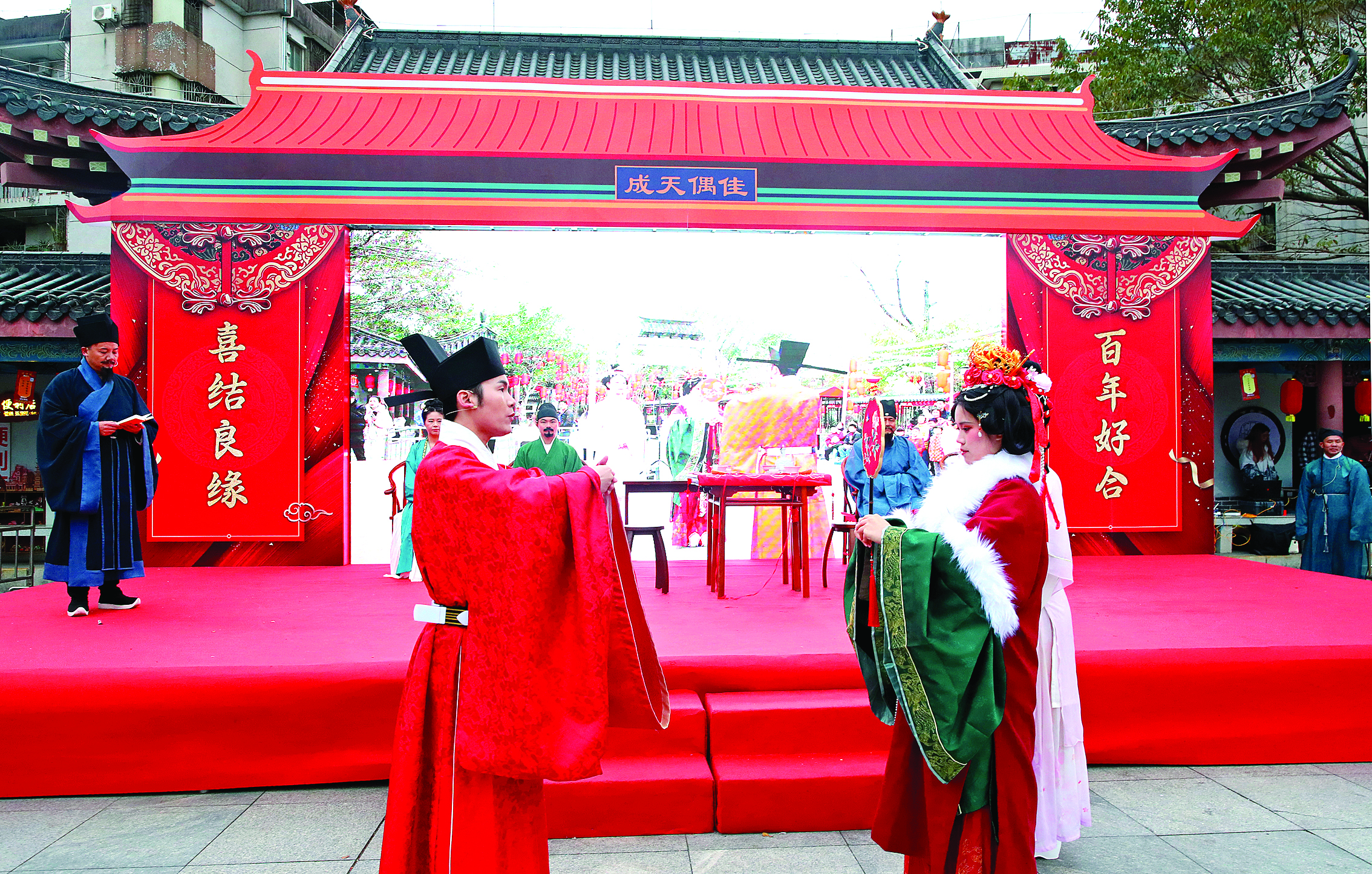 2024年2月10日,大年初一在豐湖書院上演的“宋式婚禮秀”讓市民游客感受國風(fēng)式浪漫;葜萑請笥浾哏姇承聰z