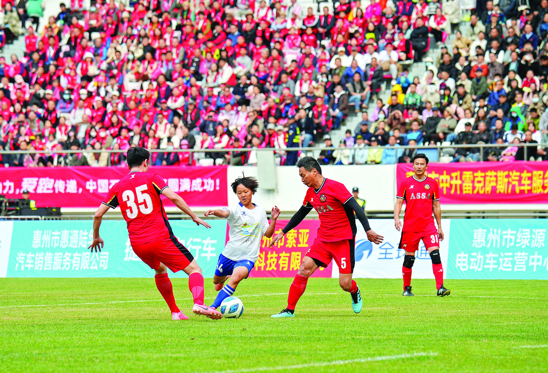 2024年12月15日,“惠民之州 惠聚美好”香港明星足球隊惠州公益邀請賽為球迷獻(xiàn)上了一場精彩紛呈的賽事;葜輺|江圖片社供圖