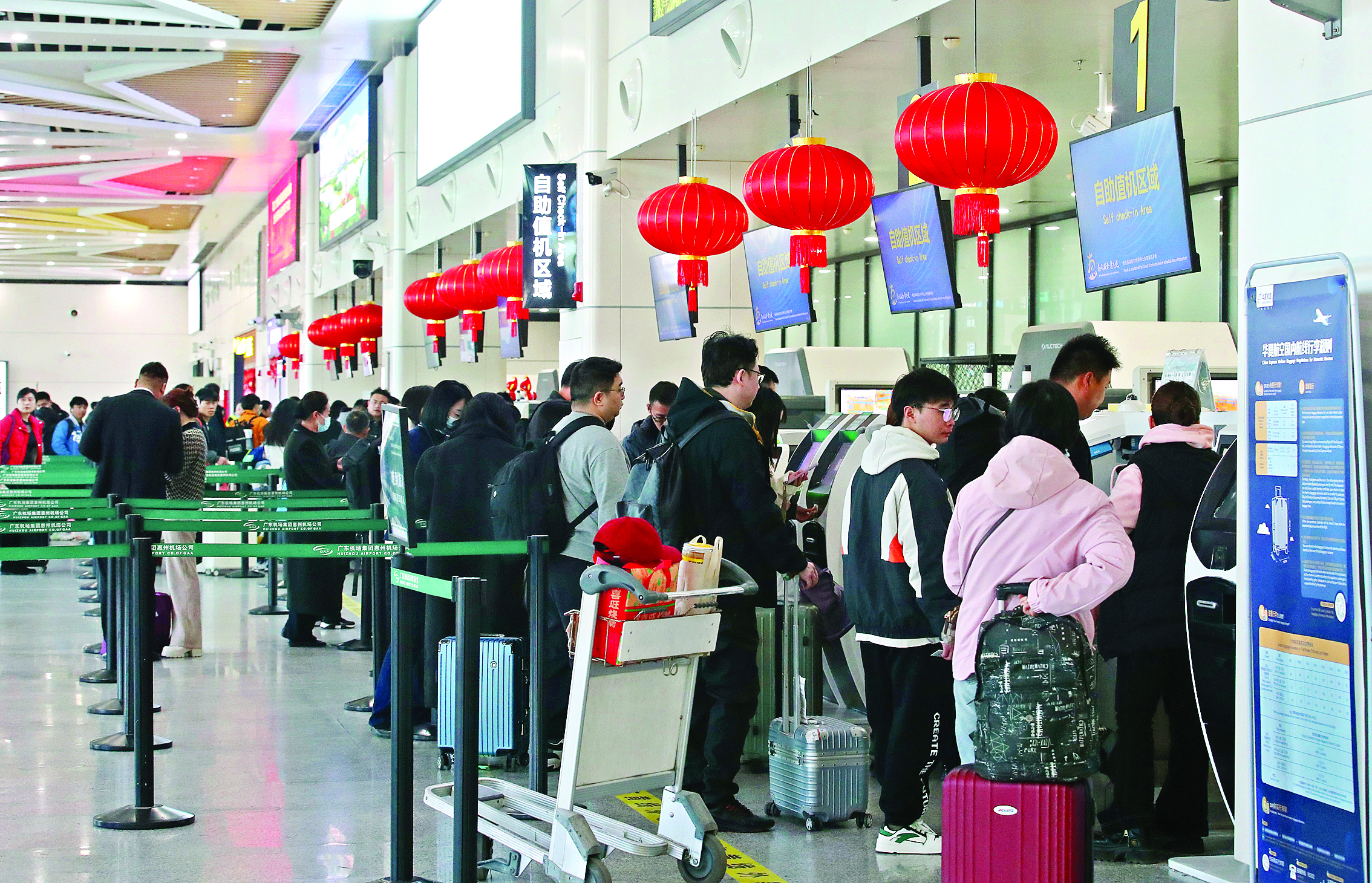 惠州機(jī)場(chǎng)掛滿(mǎn)燈籠年味濃。