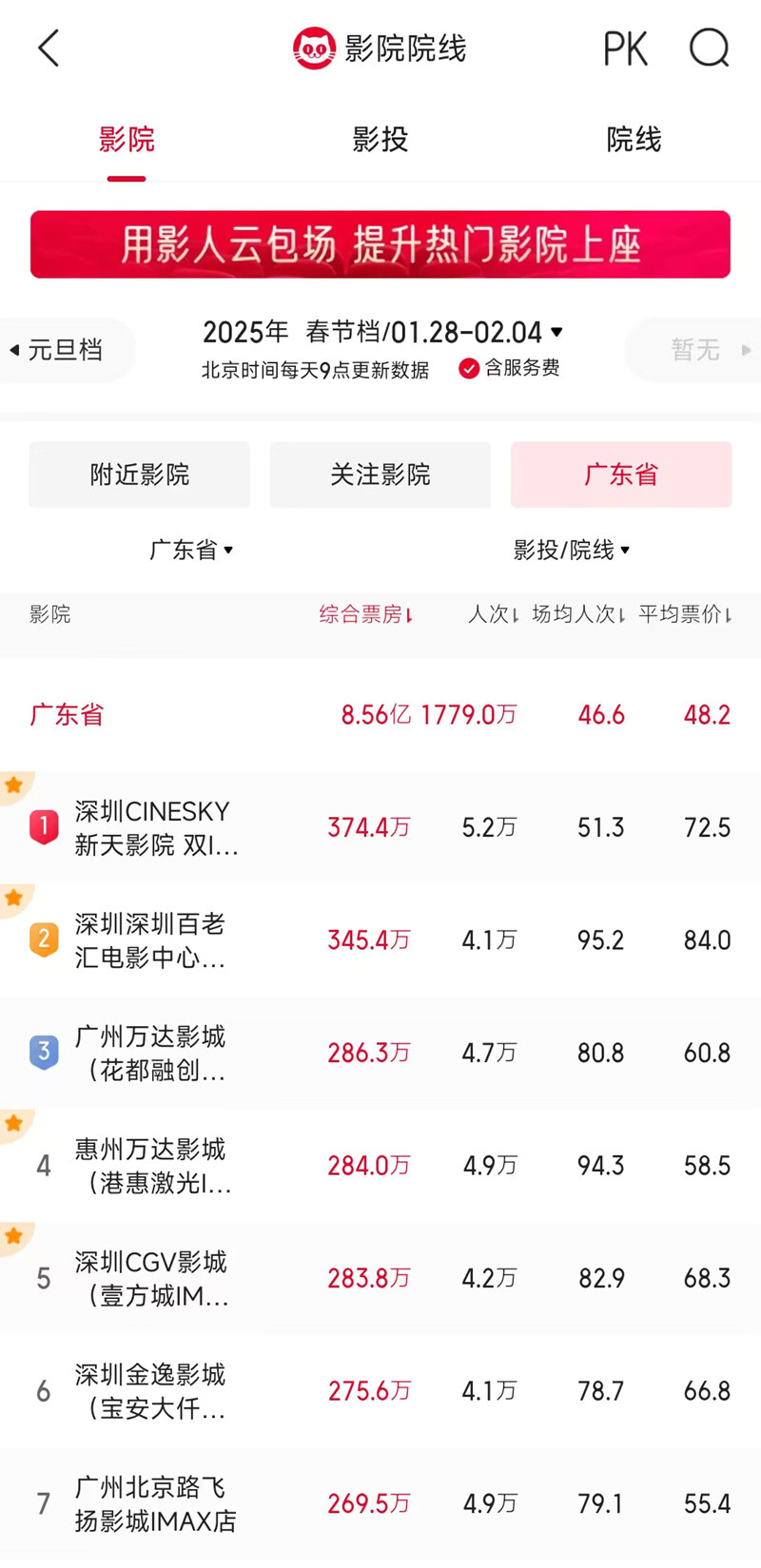 在影城表現(xiàn)方面,惠州萬達(dá)影城港惠激光IMAX店表現(xiàn)亮眼。該影城在春節(jié)檔總票房達(dá)284萬元,在廣東省排名第4位,上座率更是在廣東省排名第1,其票房和上座率在惠州本地同樣穩(wěn)居榜首。