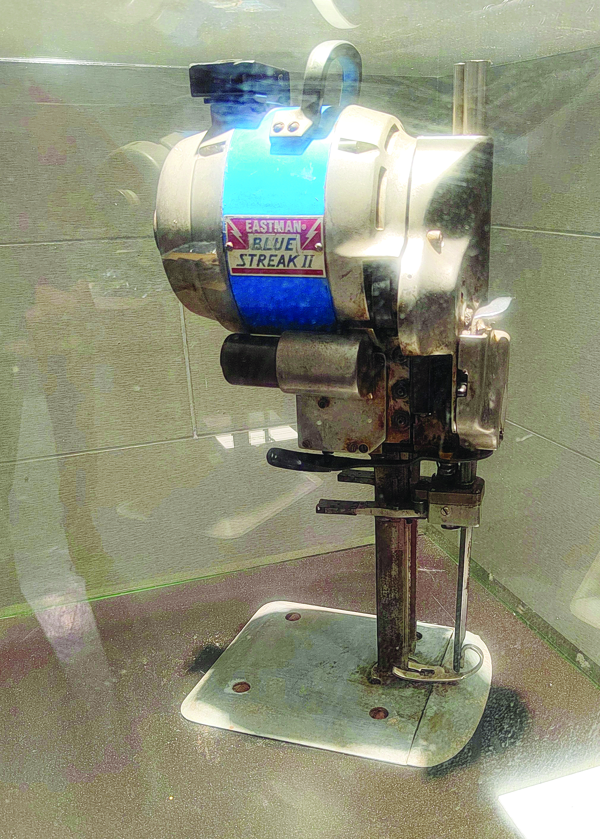 進入館內(nèi),服飾生產(chǎn)工具展示點綴其中,各式各樣的縫紉機、裁床電剪、熨斗等工具出現(xiàn)在眼前,它們浸潤過工人們、設計師們的汗水智慧,如今已經(jīng)退役,成為一件件藏品甚至加工成工藝品,展示著企業(yè)不凡的成長歷程。現(xiàn)場可供操作的鎖眼機、縫紉機、釘紐扣、繡花機,寓意著工業(yè)生產(chǎn)的不息動力。