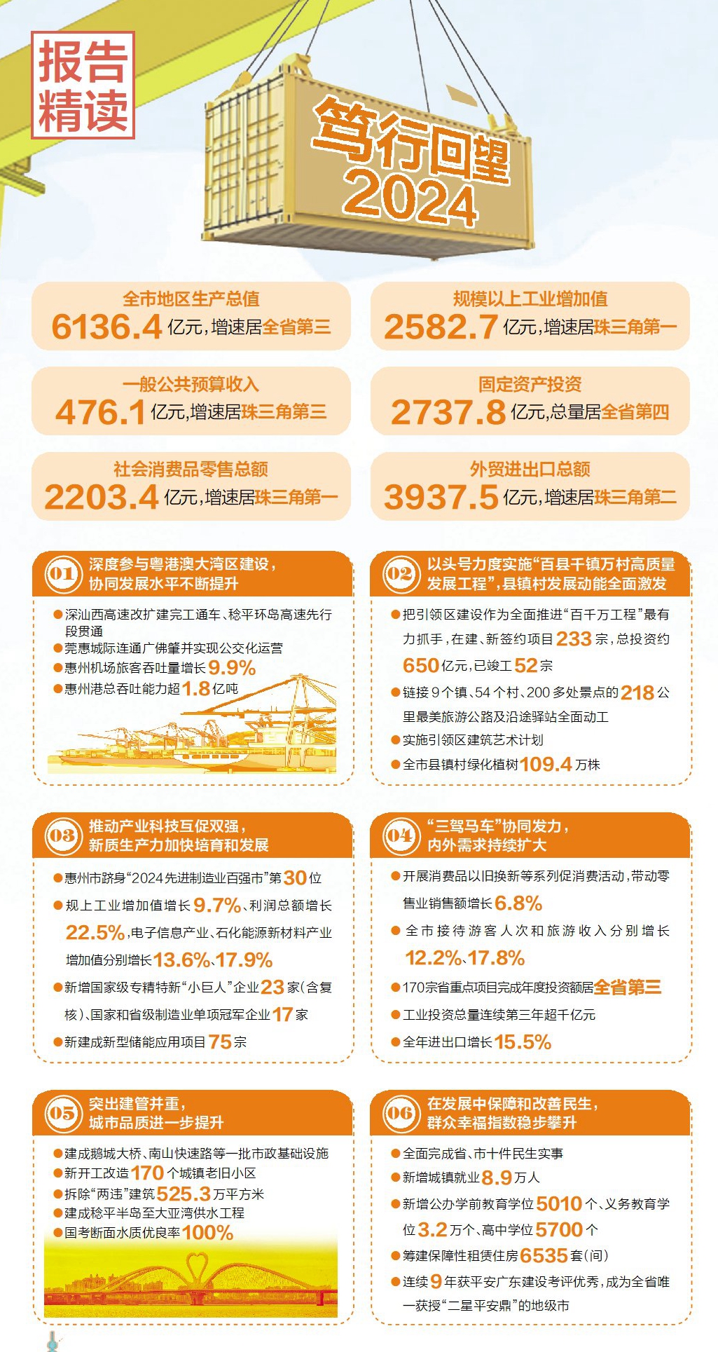 “融深融灣”“百千萬工程”“江湖一體”“兩灣聯(lián)動”……2025惠州市政府工作報告描繪了新的發(fā)展圖景,也提到了不少新詞、熱詞。這些新詞、熱詞,既是透視未來發(fā)展路徑的“風(fēng)向標(biāo)”,也是指引我們砥礪奮進(jìn)的“參照系”。它們背后的一項(xiàng)項(xiàng)舉措,也將變成惠州務(wù)實(shí)創(chuàng)新的政策組合拳,在高質(zhì)量發(fā)展新征程上書寫新答卷。