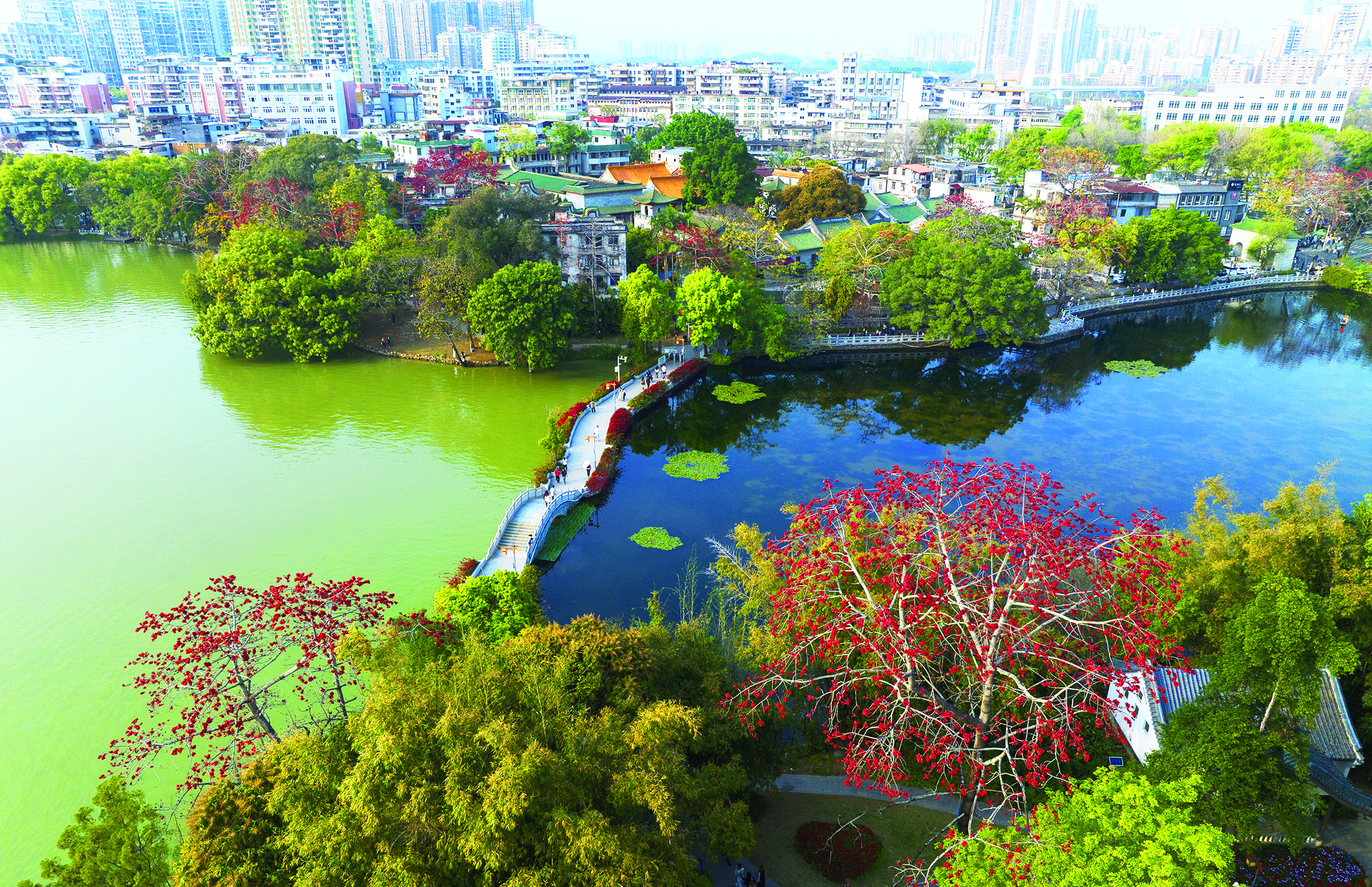 陽春三月,惠州西湖邊上的木棉花競相開放,花紅似火,花瓣厚實(shí),像一盞盞紅玉雕成的酒杯,盛滿了春光,吸引各地游客觀光打卡。