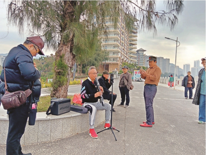 當(dāng)海風(fēng)拂過惠東巽寮灣的海岸線時(shí),來自重慶的艾民正在漁業(yè)村雙魚島廣場(chǎng)吹奏薩克斯,這是他第二年到惠州濱海旅居過冬,每次都要待上幾個(gè)月。