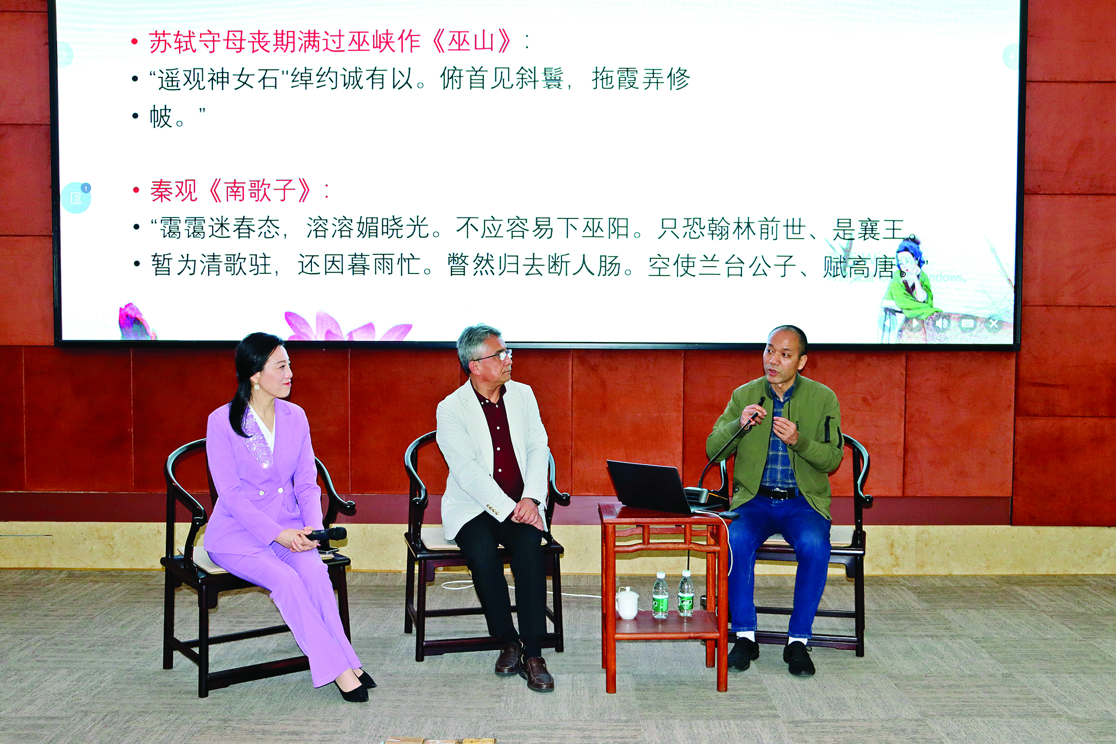 海濱(中)與申東城(右)攜手講述東坡生命中的“她”力量。