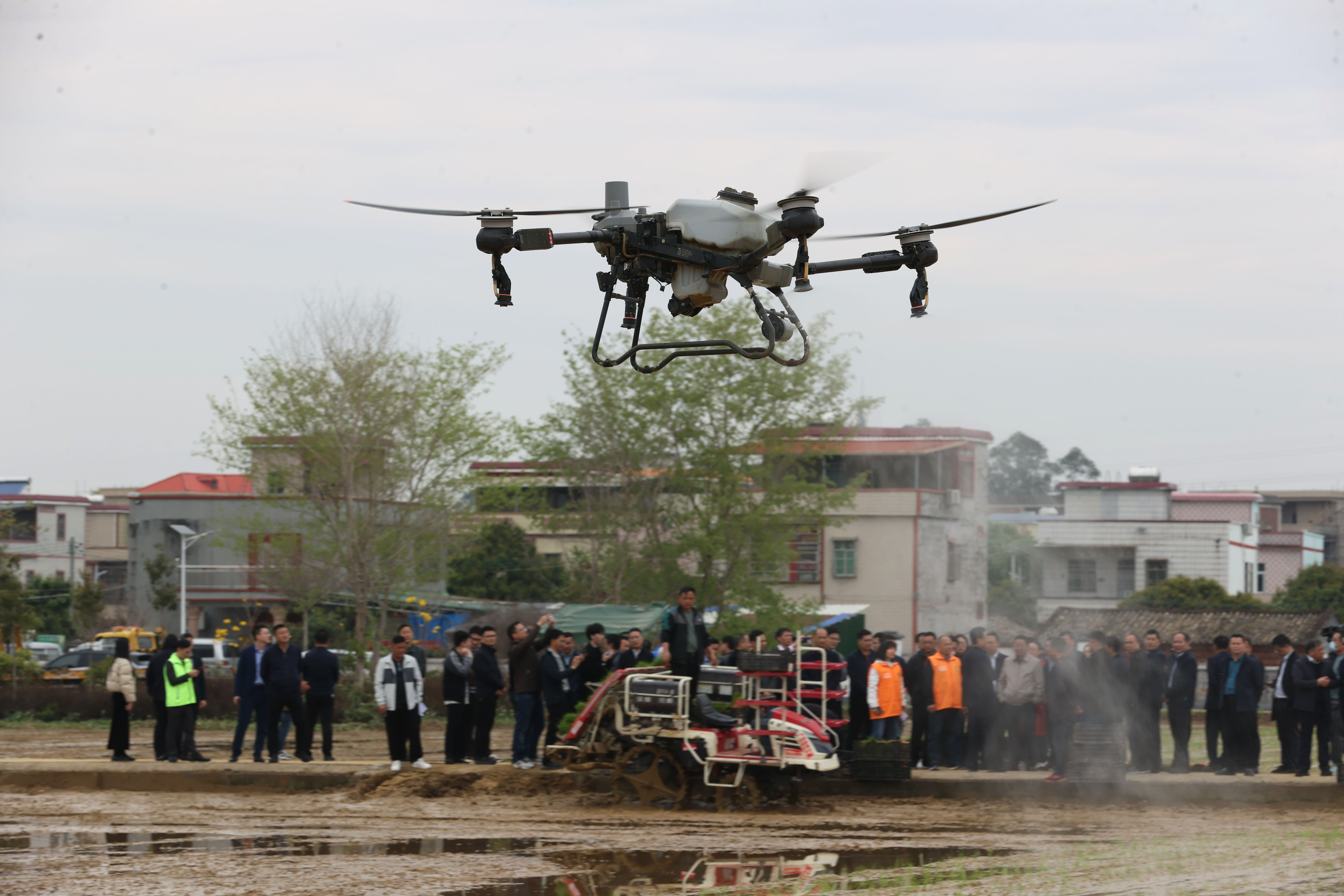 水稻穴直播機精準地將稻種播撒在田間,無人機在空中靈活穿梭噴施藥肥……在專業(yè)農(nóng)機手的駕駛和操控下,博羅縣麻陂鎮(zhèn)洪湖村內(nèi)的大片水田很快便完成春耕播種任務,高效又便捷。