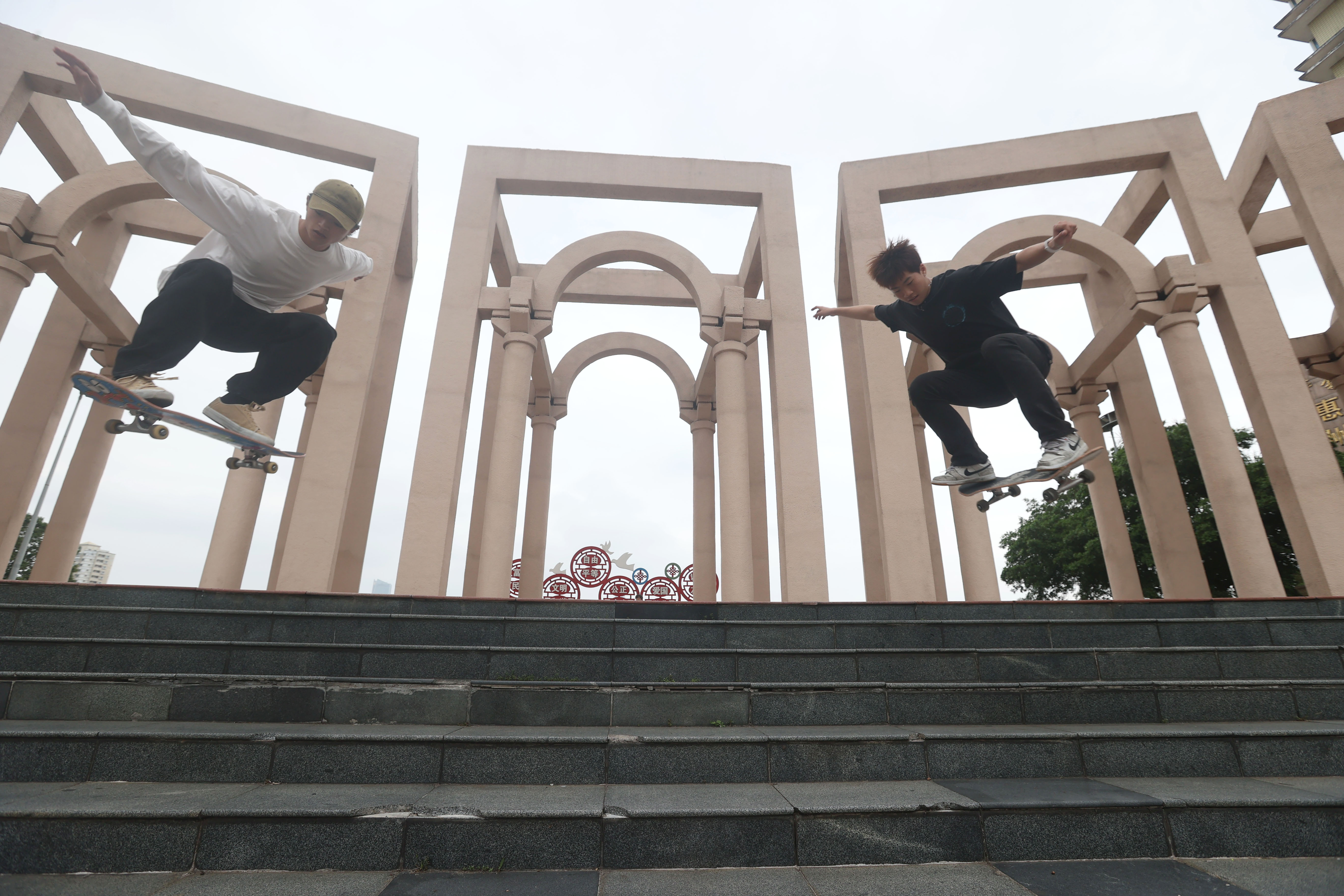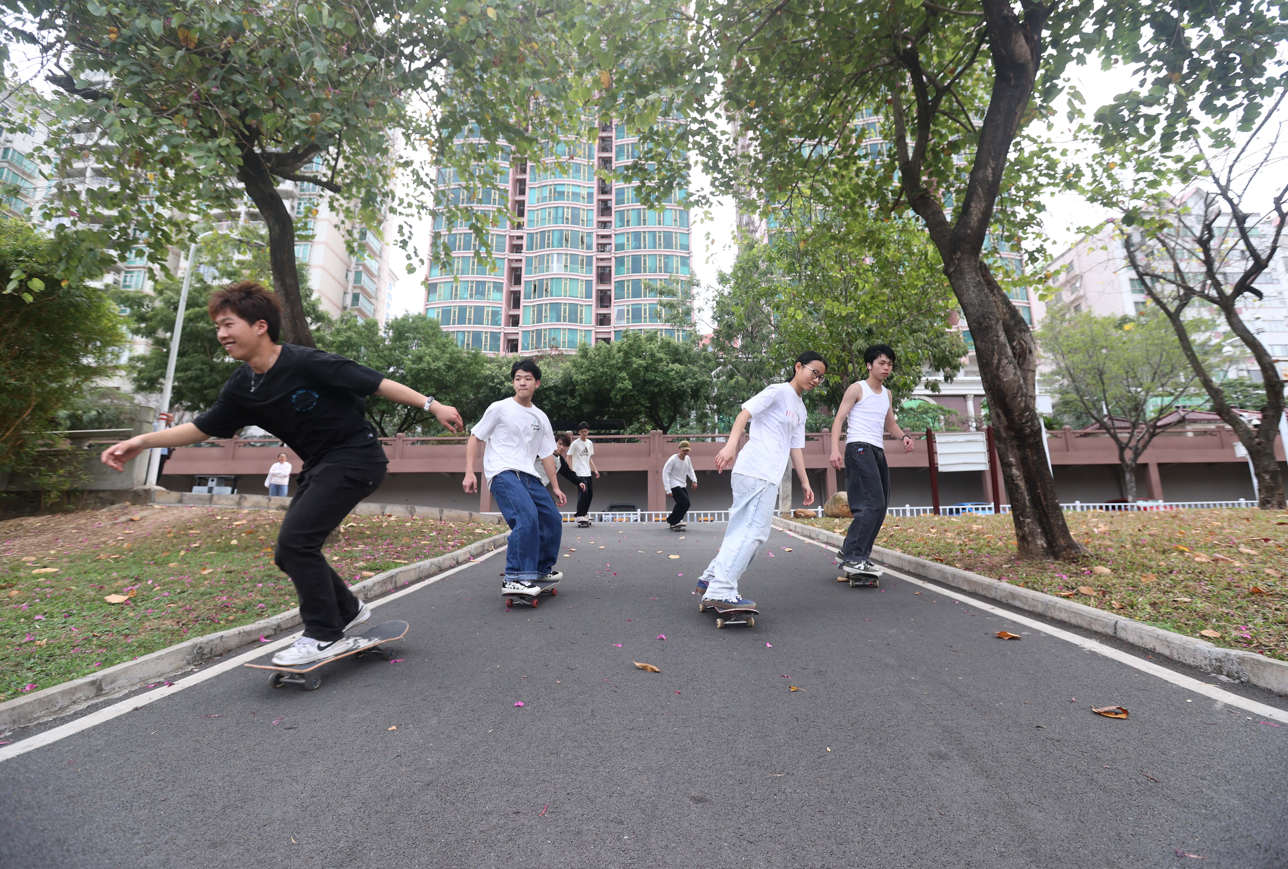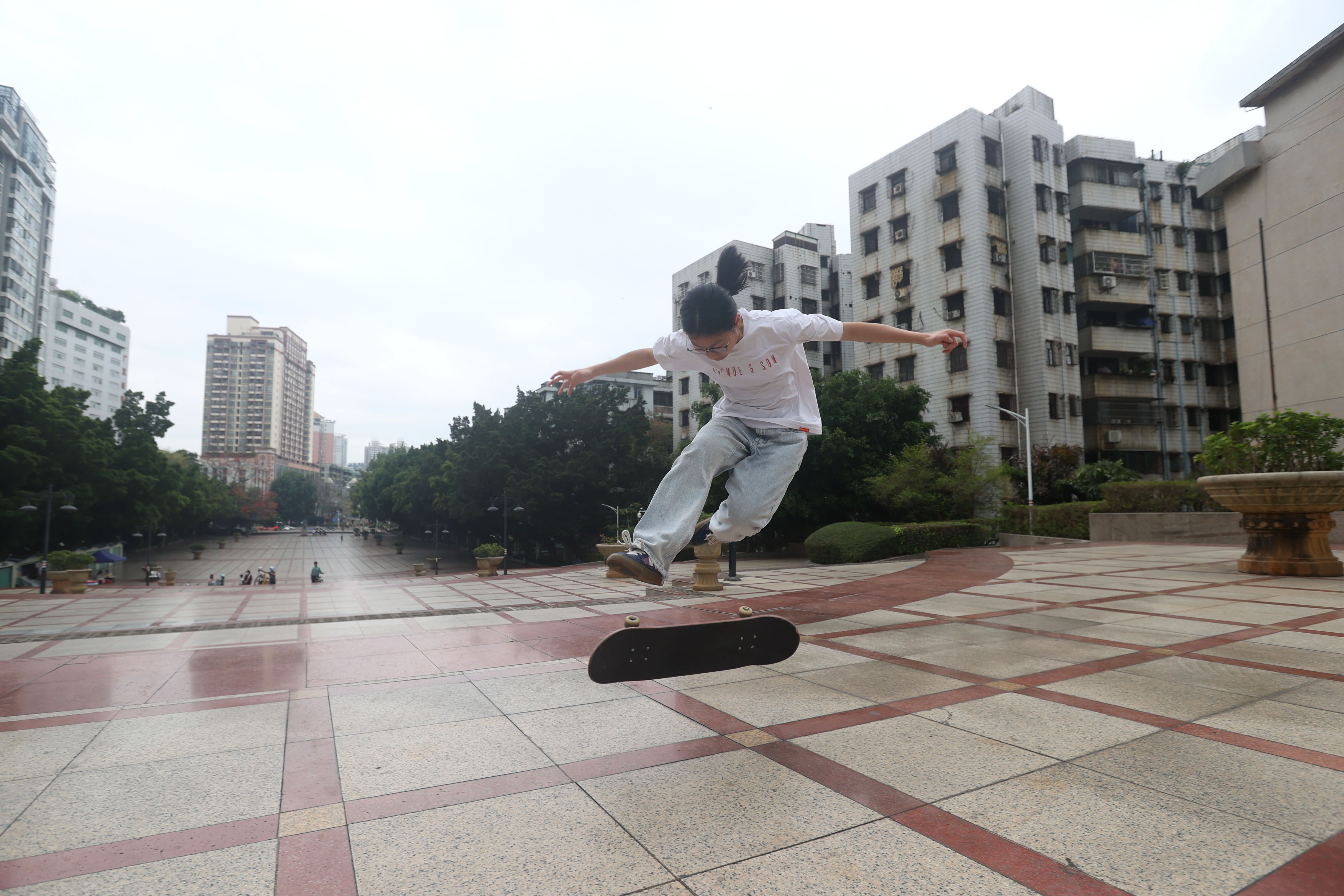 在惠州市華羅庚中學讀高一的張藝婧今年16歲,有3年“板齡”。她坦言:“課業(yè)壓力雖大,但踩上滑板的那一刻,所有煩惱都隨著騰空的動作被甩開。”惠州市一中高三學生鐘冠文認為,玩滑板能鍛煉身體,更有利于學習。他們腳下的滑板靈動穿梭,一道道弧線仿佛勾勒出惠州“青春之城”的嶄新輪廓。在這里,自由不羈的街頭文化與城市發(fā)展愿景正碰撞出耀眼的火花。