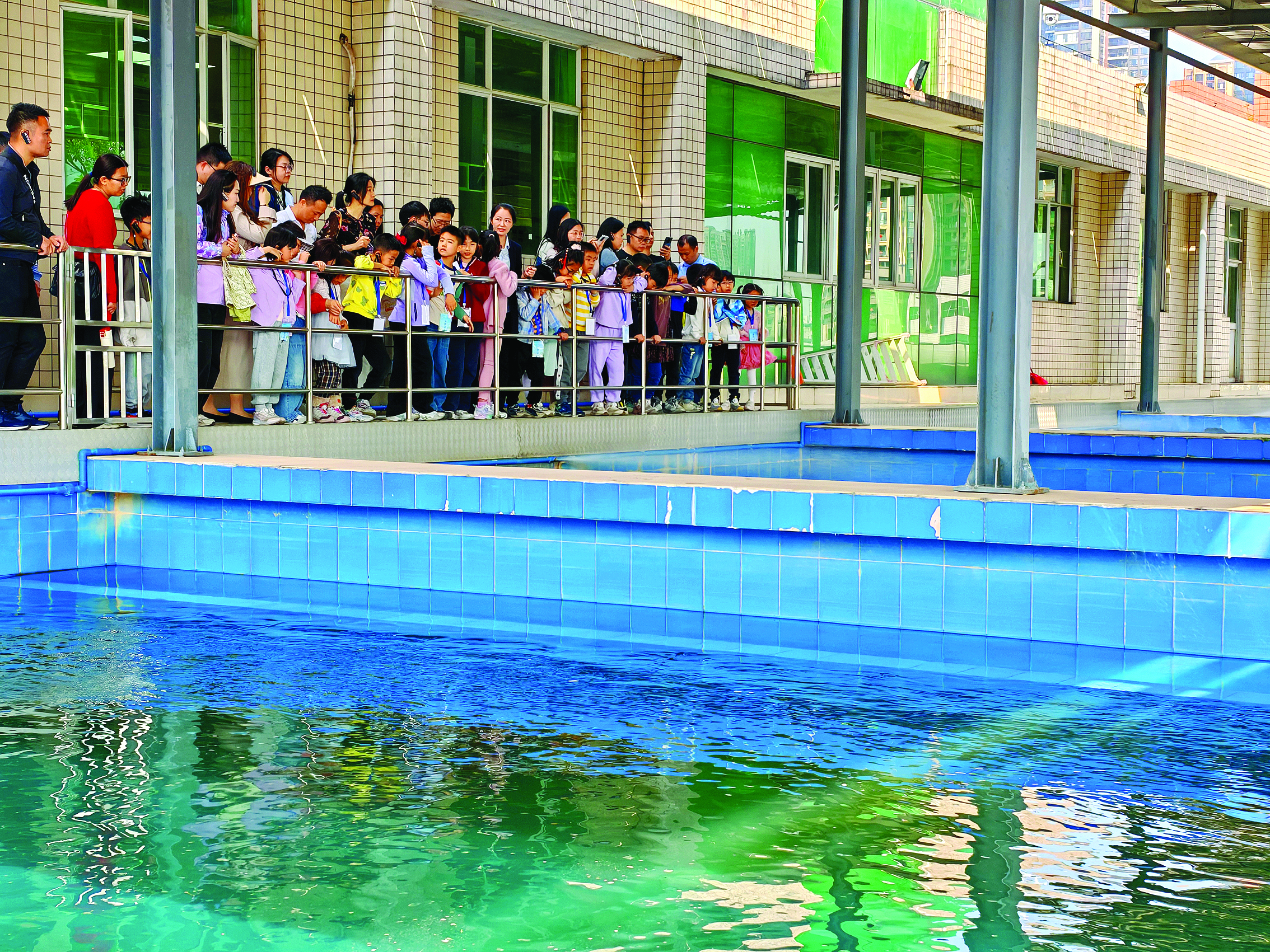 跟隨著講解員,孩子們依次走過反應(yīng)沉淀池、V型砂濾池、清水池等,傾聽講解員細(xì)致解說(shuō)從原水到凈水的處理流程!靶∨笥褌,你們看,來(lái)自東江的原水來(lái)到這里,首先會(huì)在沉淀池里沉淀,把大顆粒的雜質(zhì)沉淀到池底。然后,經(jīng)過投加次氯酸鈉等環(huán)節(jié),對(duì)水進(jìn)行層層消毒凈化,最后通過輸水管道送往千家萬(wàn)戶!”孩子們聽得聚精會(huì)神,不時(shí)發(fā)出驚嘆聲。
