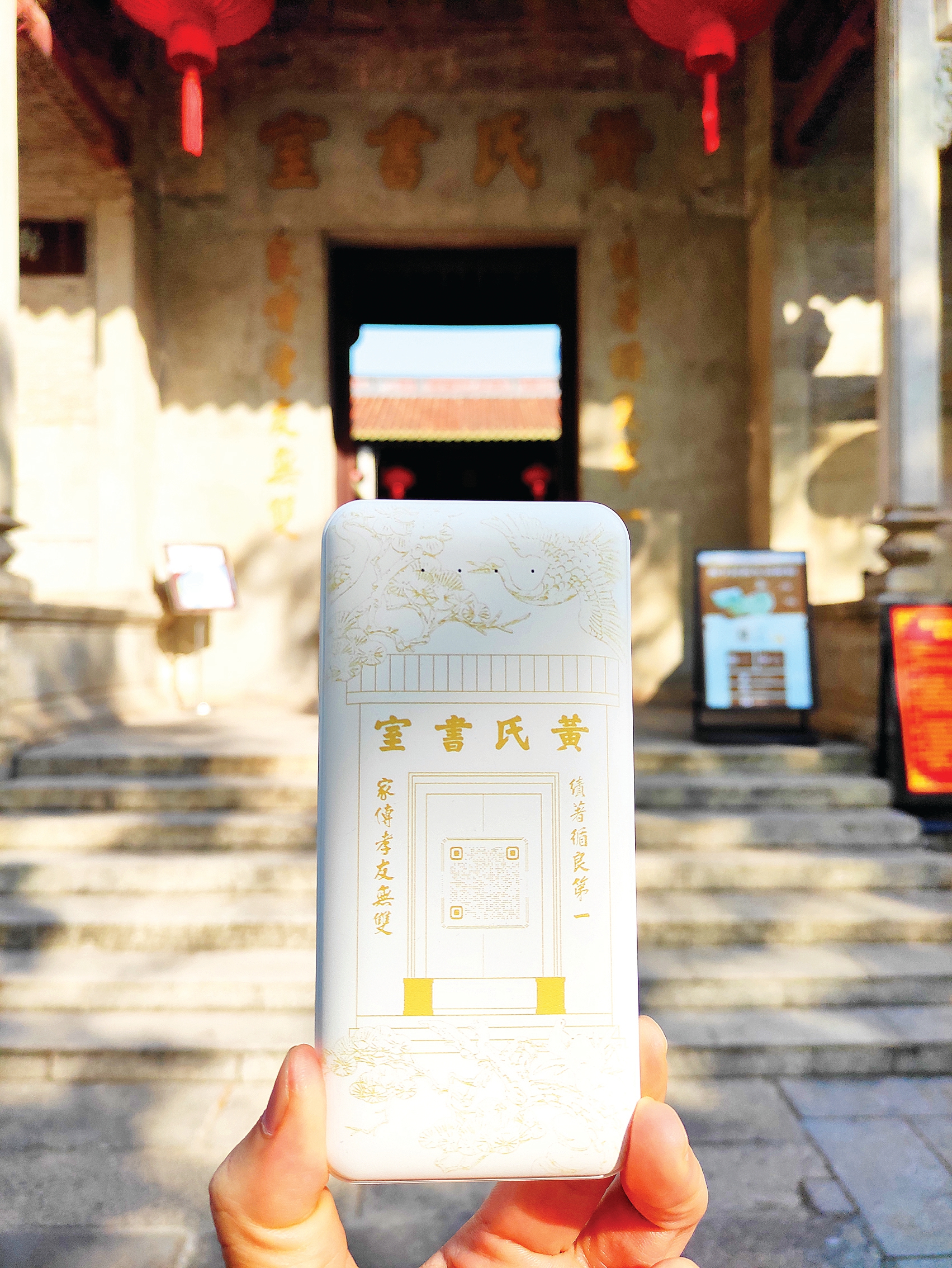 黃氏書(shū)室大門(mén)前的花鳥(niǎo)磚雕成為“鶴禧”充電寶設(shè)計(jì)元素。