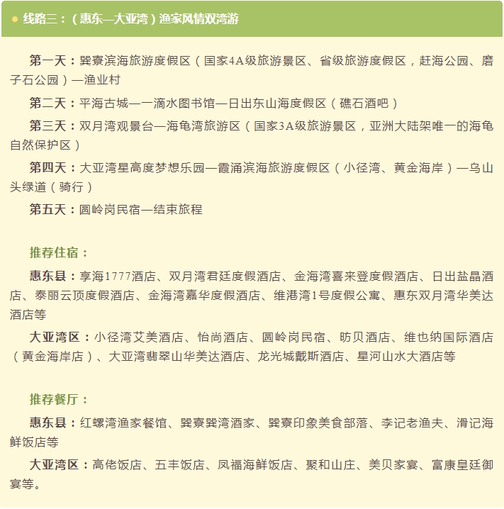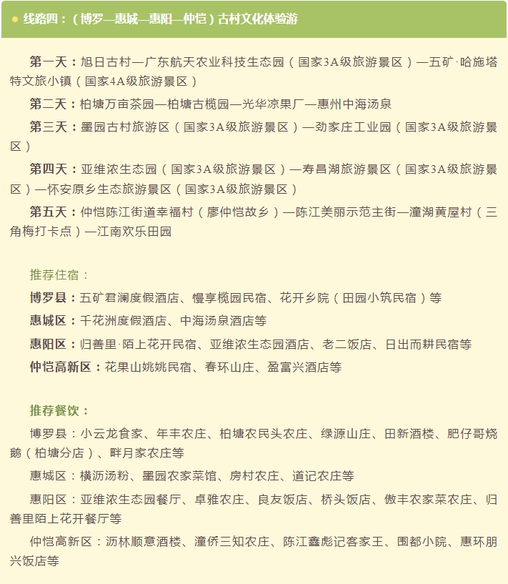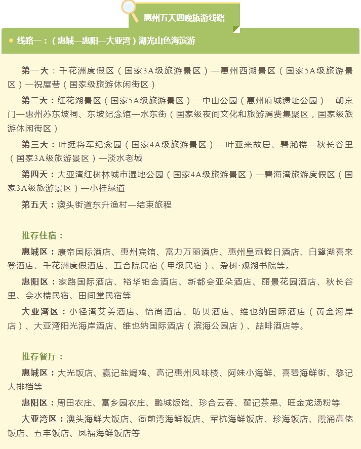 主辦方精心策劃,挖掘“一湖兩江”薈客廳、環(huán)南昆山—羅浮山縣鎮(zhèn)村高質量發(fā)展引領區(qū)、環(huán)大亞灣—雙月灣濱海旅游區(qū)文旅資源,串聯(lián)沿線傳統(tǒng)村落、鄉(xiāng)村旅游點、民宿、山河湖海泉林資源,發(fā)布了惠州2025年夏秋4條旅游線路,打造有故事可講、閉環(huán)的旅游路線。這些線路不僅展示了惠州獨特的自然風光,更帶領游客深入體驗惠州的文化底蘊和人文魅力。