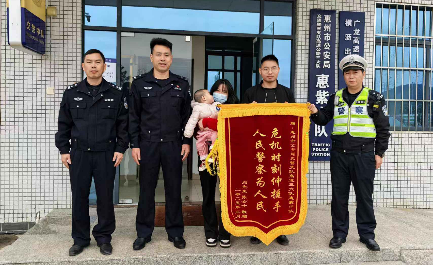 一個(gè)10個(gè)月大的嬰兒誤吞別針,卡住喉嚨,情勢(shì)危急。接到求助后,執(zhí)勤民警駕駛警車,一路拉響警笛,將嬰兒平安護(hù)送至醫(yī)院急救。3月29日上午,嬰兒的父母帶著一面“危機(jī)時(shí)刻伸援手 人們警察為人民”的錦旗來(lái)到惠州市公安局交警支隊(duì)高三大隊(duì),當(dāng)面向及時(shí)伸出援手的公安民警表達(dá)謝意。