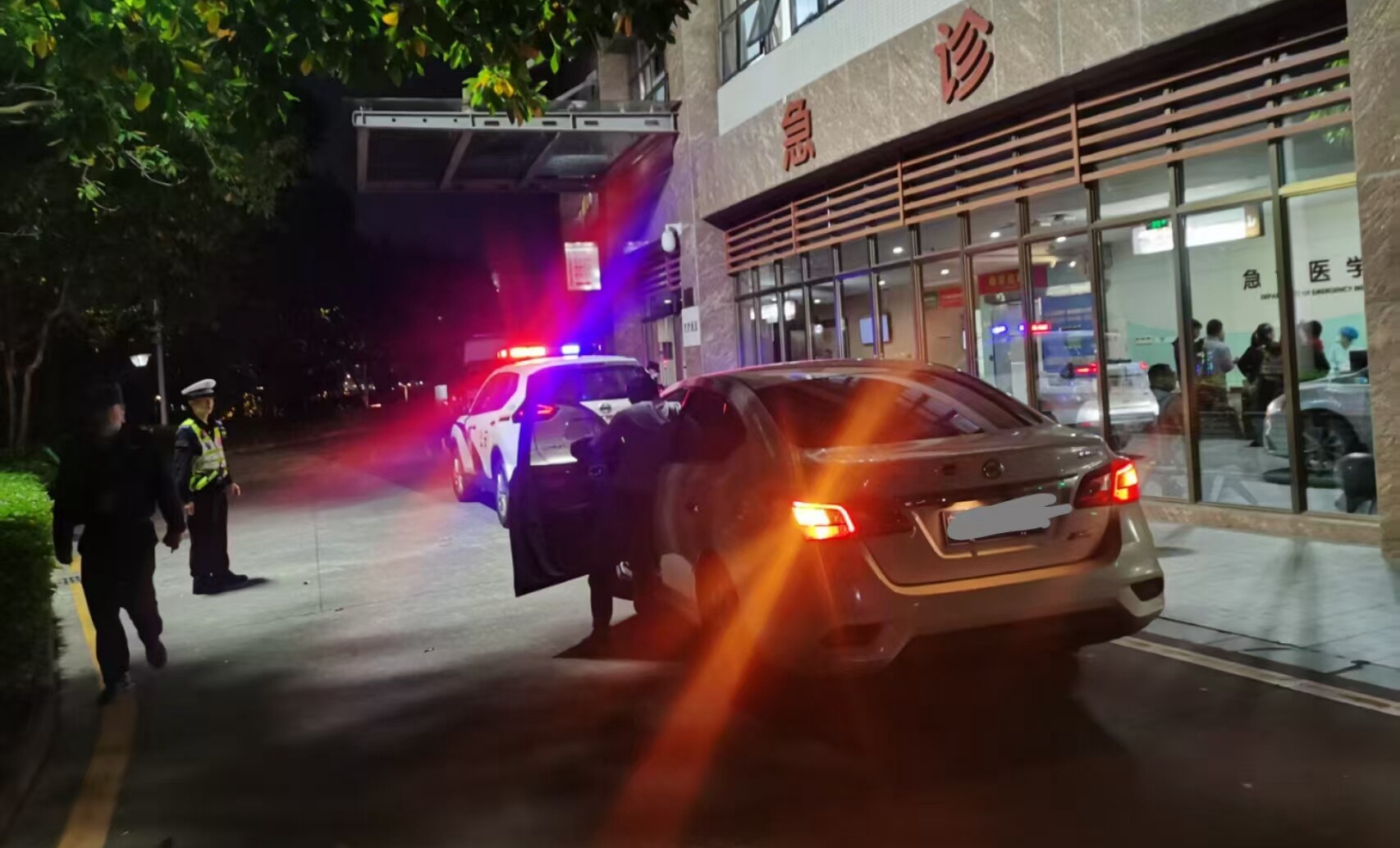 執(zhí)勤交警一路護(hù)送求助群眾到達(dá)醫(yī)院急救。