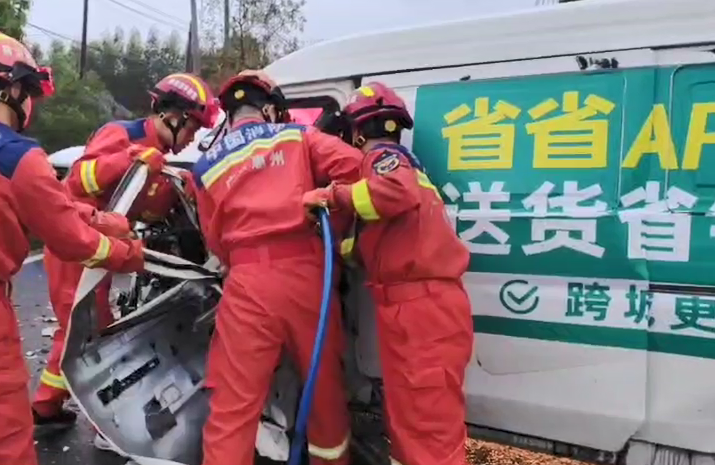 據(jù)了解,現(xiàn)場為兩輛面包車相撞,其中一車因劇烈撞擊導致駕駛室嚴重變形,駕駛員被困駕駛室內(nèi),左腿被變形操控臺緊緊卡住無法脫身。
