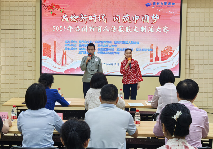 惠州日報訊 (記者龔妍 譚琳 通訊員李海雄 藍(lán)勇)4月11日,“共繪新時代 同筑中國夢”2025惠州市盲人詩歌散文朗誦大賽在惠州市圖書館圓滿落幕。在“世界讀書日”前夕,12名視障選手以聲音為筆,描繪出充滿溫度的藝術(shù)畫卷,贏得現(xiàn)場觀眾的熱烈掌聲。