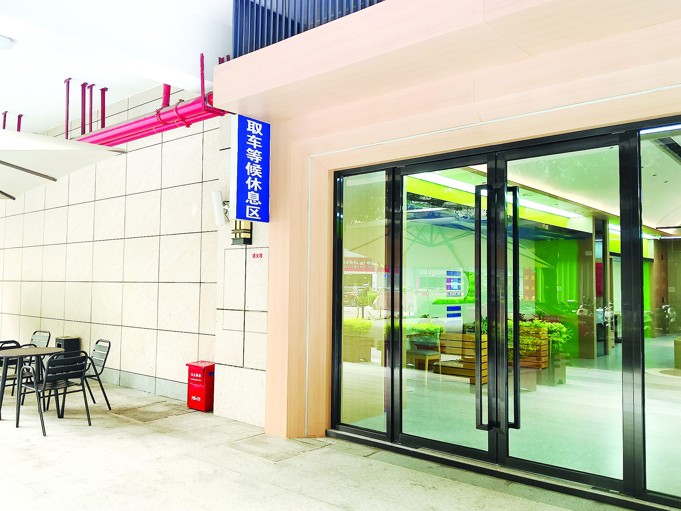 濱江公園智慧停車(chē)場(chǎng)設(shè)有取車(chē)等候休息區(qū);葜萁煌吨腔弁\(chē)投資有限公司供圖