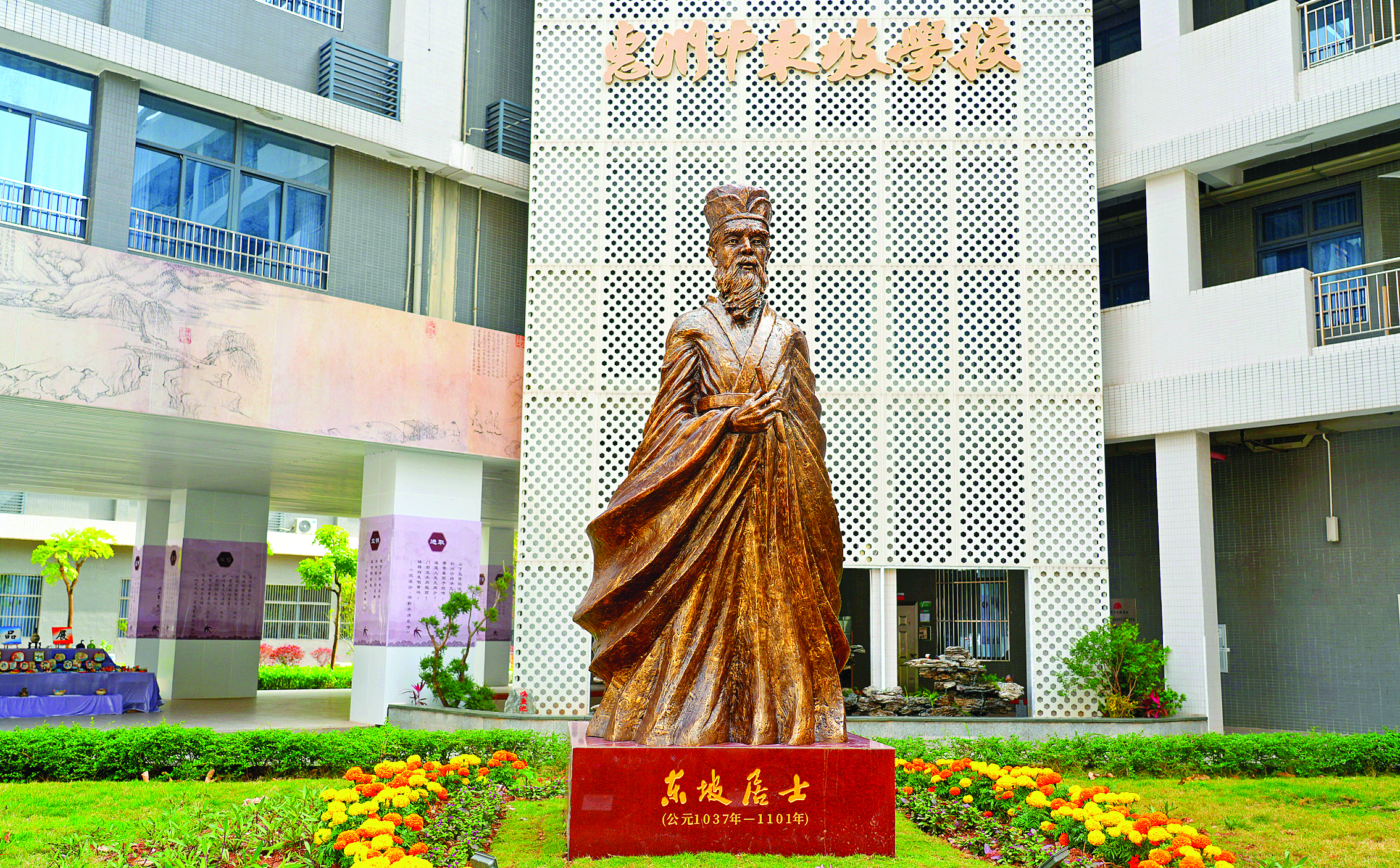 講座開始前,市東坡學(xué)校東坡居士塑像揭幕,為校園增添新的文化地標(biāo),該塑像由惠州市泥塑協(xié)會會長王云鵬創(chuàng)作。據(jù)悉,市東坡學(xué)校是惠州唯一一所以“東坡”命名的學(xué)校。該校積極弘揚(yáng)東坡文化、傳承東坡精神,在校園設(shè)置“東坡文化長廊”“喚魚池”,述說東坡故事;在課堂中,學(xué)生誦讀東坡詩文,讓經(jīng)典浸潤課堂;舉辦“東坡書畫展”“東坡愛心集市”等活動。