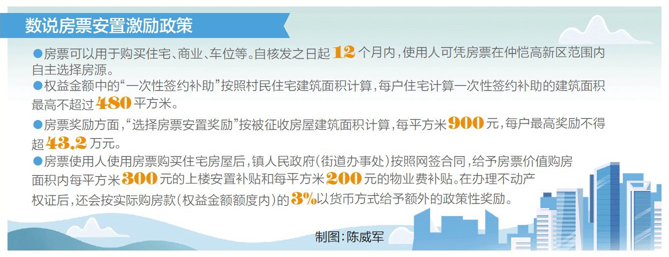 根據(jù)《方案》,房票可以用于購買住宅、商業(yè)、車位等。自核發(fā)之日起12個月內(nèi),使用人可憑房票在仲愷高新區(qū)范圍內(nèi)自主選擇房源。像李先生持有的首張房票,票面價值約300萬元,該金額由權(quán)益金額和房票獎勵構(gòu)成。權(quán)益金額中的“一次性簽約補(bǔ)助”按照村民住宅建筑面積計算,每戶住宅計算一次性簽約補(bǔ)助的建筑面積最高不超過480平方米。房票獎勵方面,“選擇房票安置獎勵”按被征收房屋建筑面積計算,每平方米900元,每戶最高獎勵不得超43.2萬元。“臨時安置補(bǔ)助費獎勵”按被征收房屋建筑面積一次性獎勵12個月。這就為被征收人提供了更多的選擇與實惠。