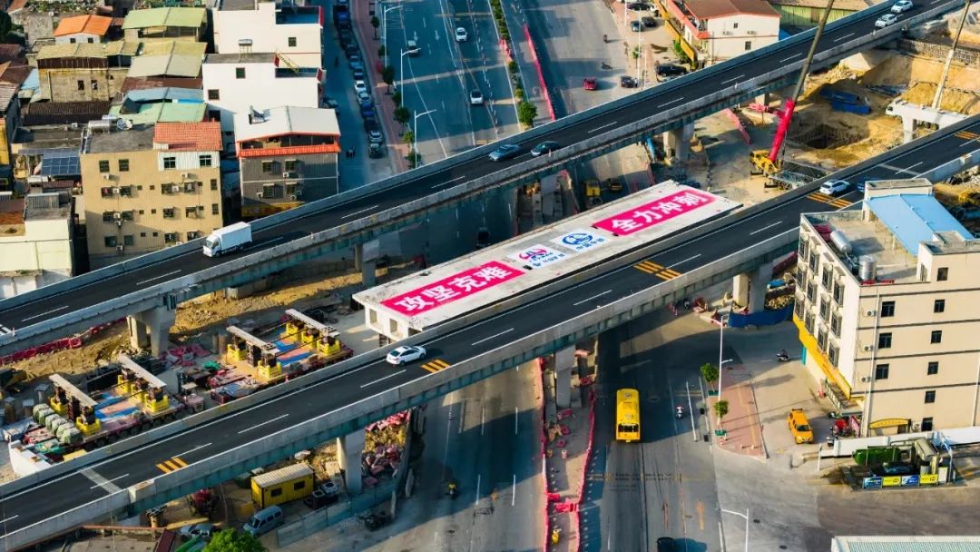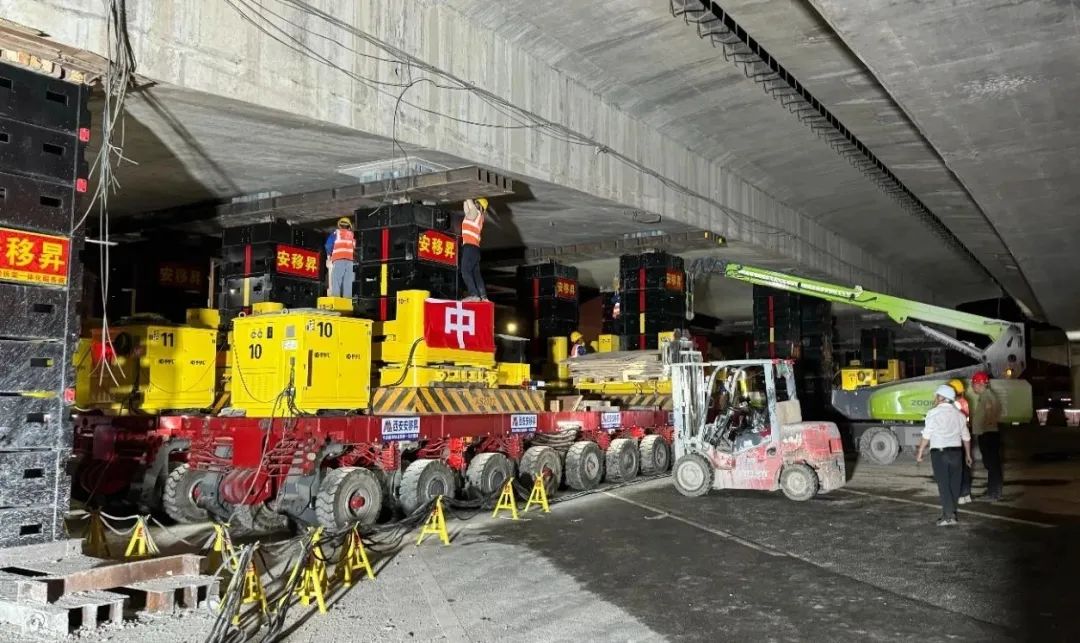考慮到金龍大道車流量大、貨車多,周邊樓房密集,為確保安全、高效施工,項目選擇SPMT模塊車搭配液壓升降系統(tǒng),讓拆橋工作更智慧。該工藝通過智慧頂升系統(tǒng)將橋梁同步抬起、下降,再由模塊車精準移動整體結構,在實現(xiàn)快速拆橋的同時,無需全封閉地方交通,還避免了傳統(tǒng)爆破施工帶來的粉塵和噪音污染,更加綠色環(huán)保。