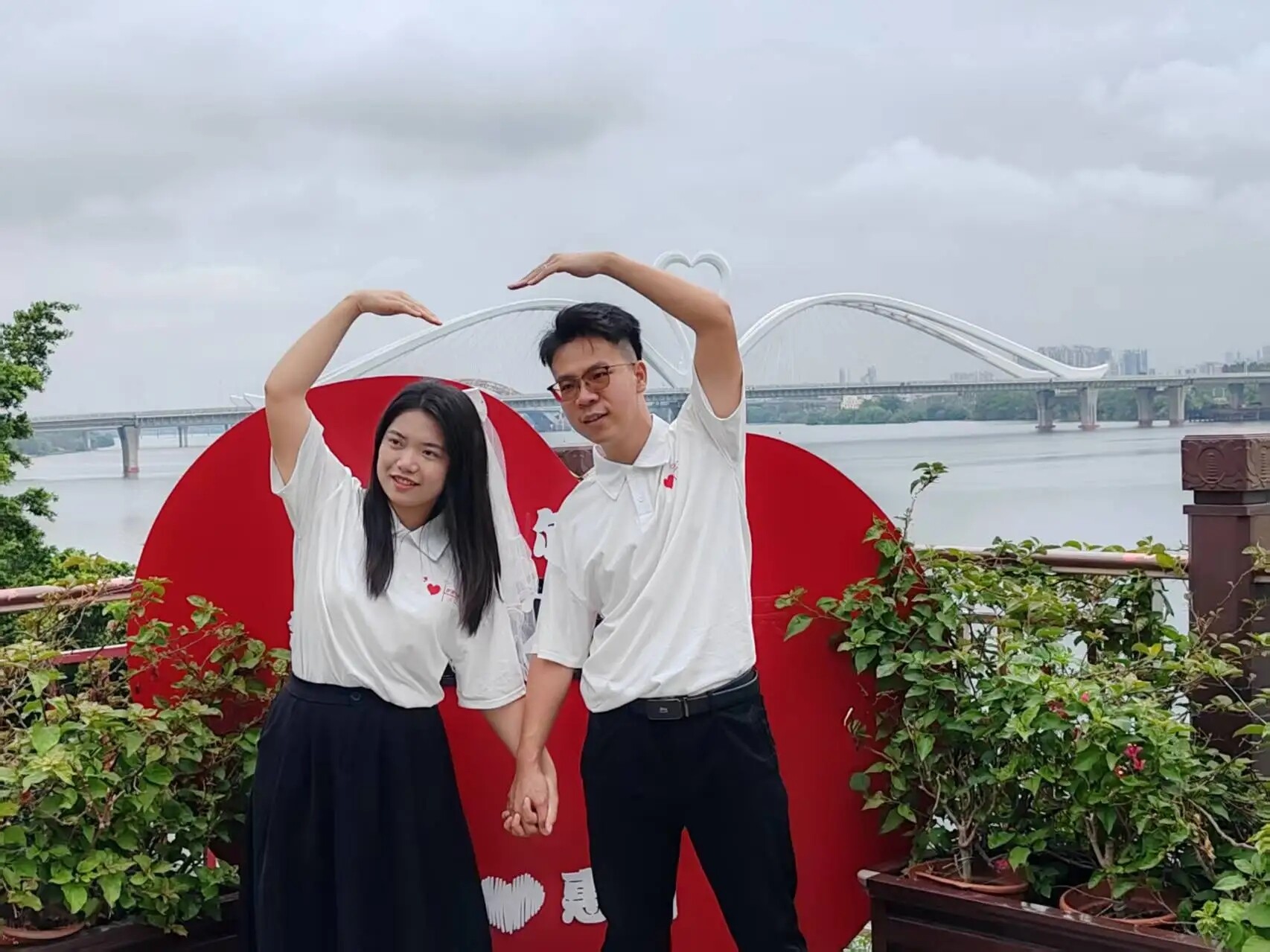 4月19日上午,新人們在惠州新地標(biāo)打卡點(diǎn)鵝城大橋打卡點(diǎn)拍攝寫真照片及活動宣傳短片。