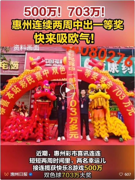 又中了!近期,惠州在短短兩周內(nèi),兩名幸運(yùn)兒接連攬獲快樂8游戲500萬、雙色球703萬大獎。