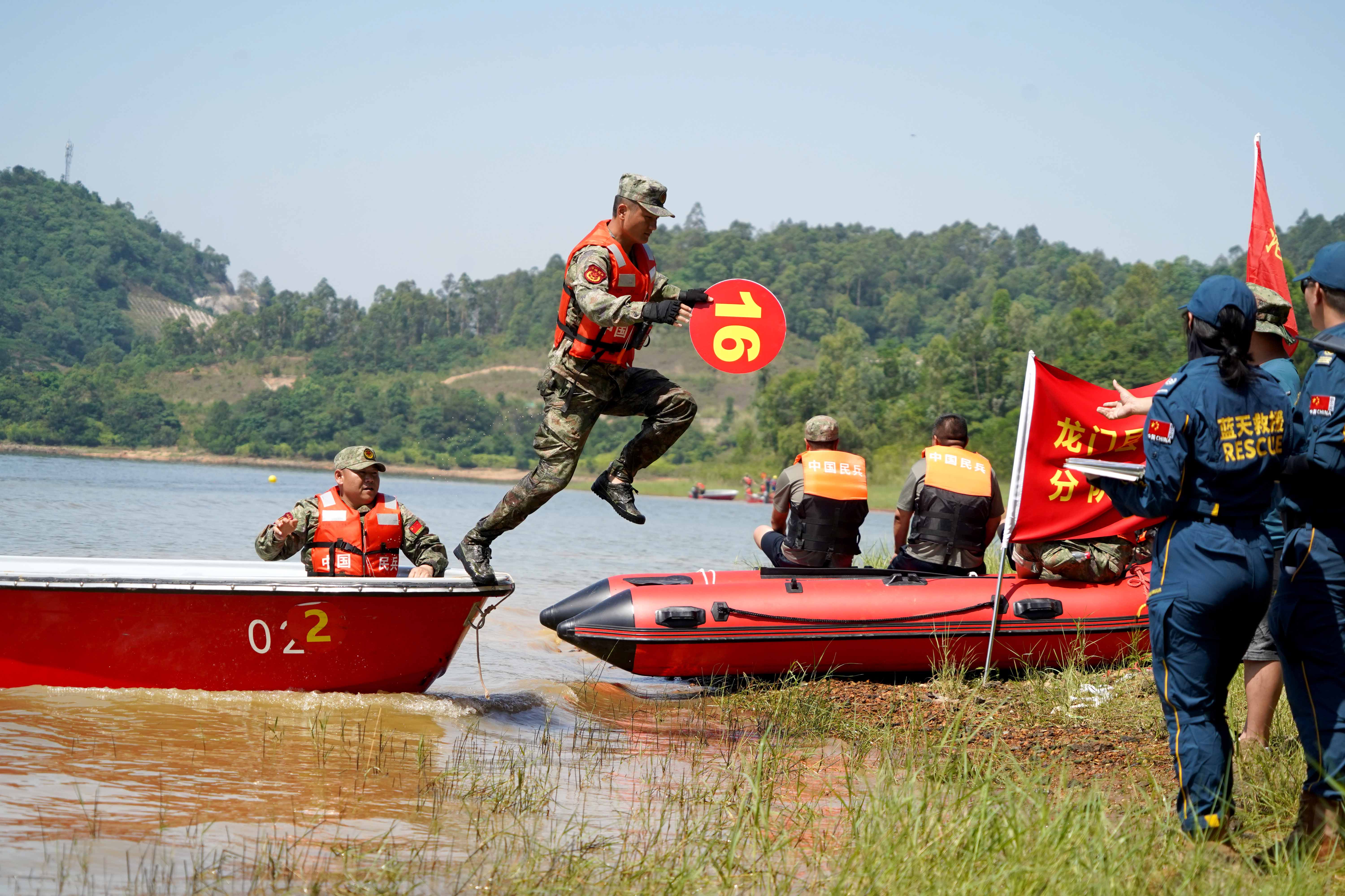 當(dāng)天上午,在惠城區(qū)角洞水庫(kù)寬闊的水面上,只見(jiàn)參加演練的民兵骨干軍容嚴(yán)整、士氣高昂,大家操作班組沖鋒舟先后進(jìn)行了S形過(guò)障、倒舟行駛、通過(guò)障礙和協(xié)同搜救課目連貫考核。