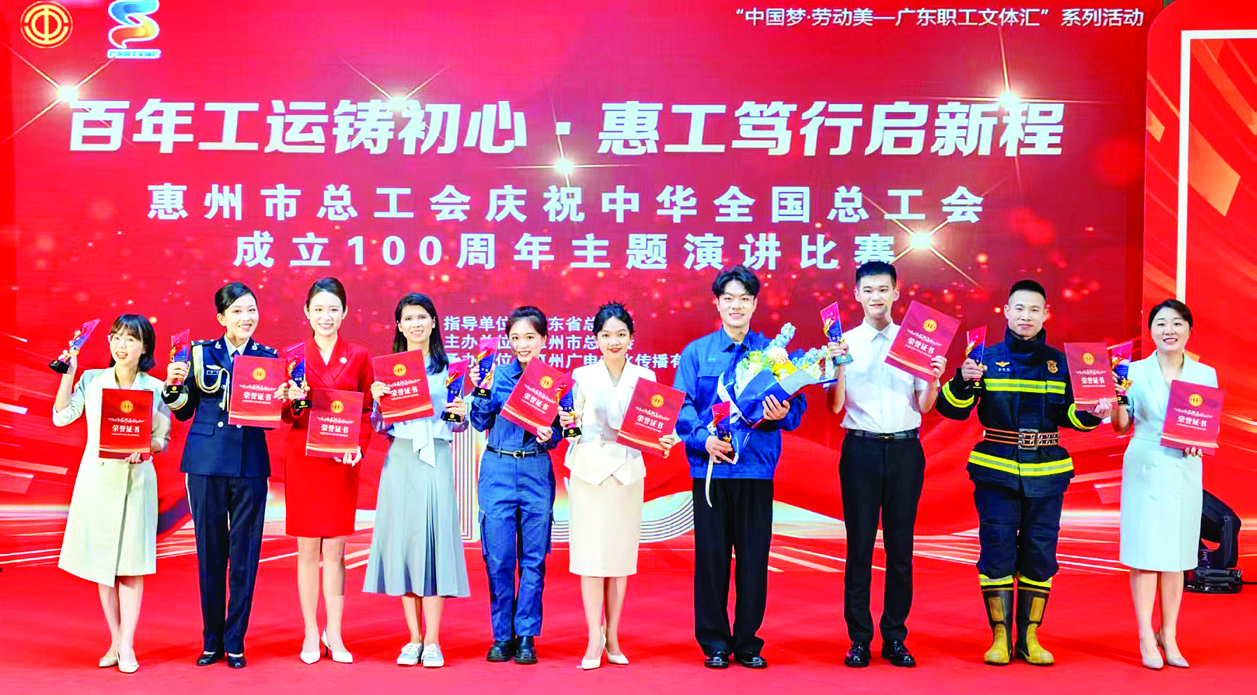 活動以短片《百年赤誠·惠工答卷》拉開序幕,短片凝練展現(xiàn)惠州工運百年脈絡(luò):從1925年周恩來同志點燃工農(nóng)運動火種,到中華全國總工會惠州辦事處成立;從抗戰(zhàn)時期工人抗敵后援會投身家國守護(hù),到新中國成立后勞動競賽開展與工人文化宮建設(shè);從省港大罷工的歷史回響,到粵港澳大灣區(qū)建設(shè)中勞動者的工匠精神與創(chuàng)新實踐,勾勒出工會與職工同心同行的奮斗圖景。